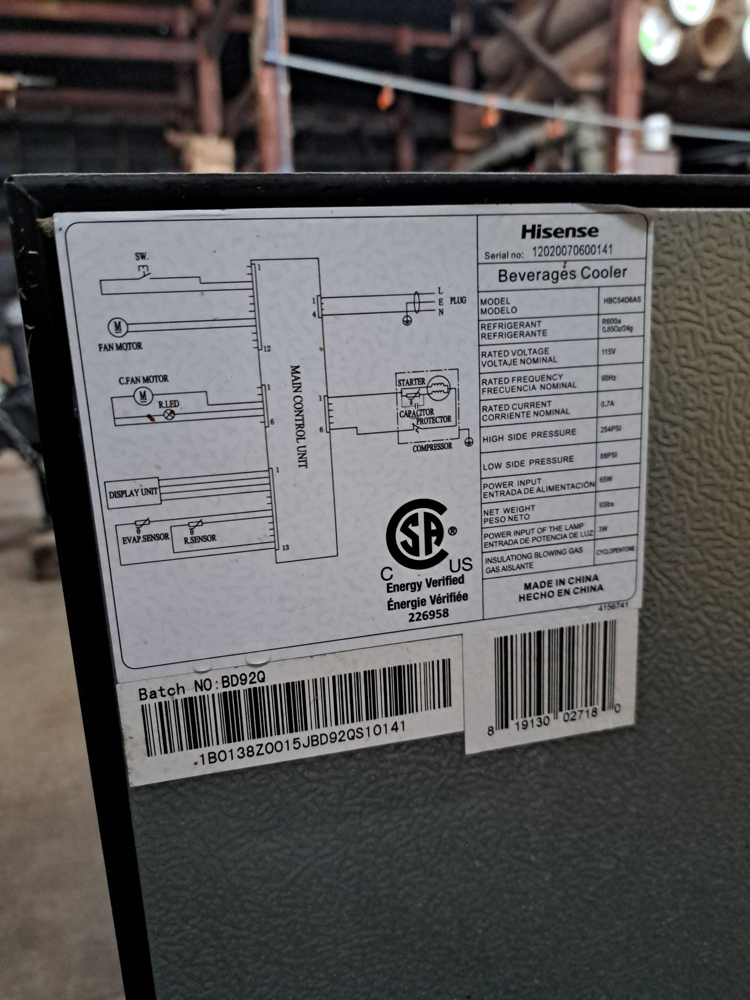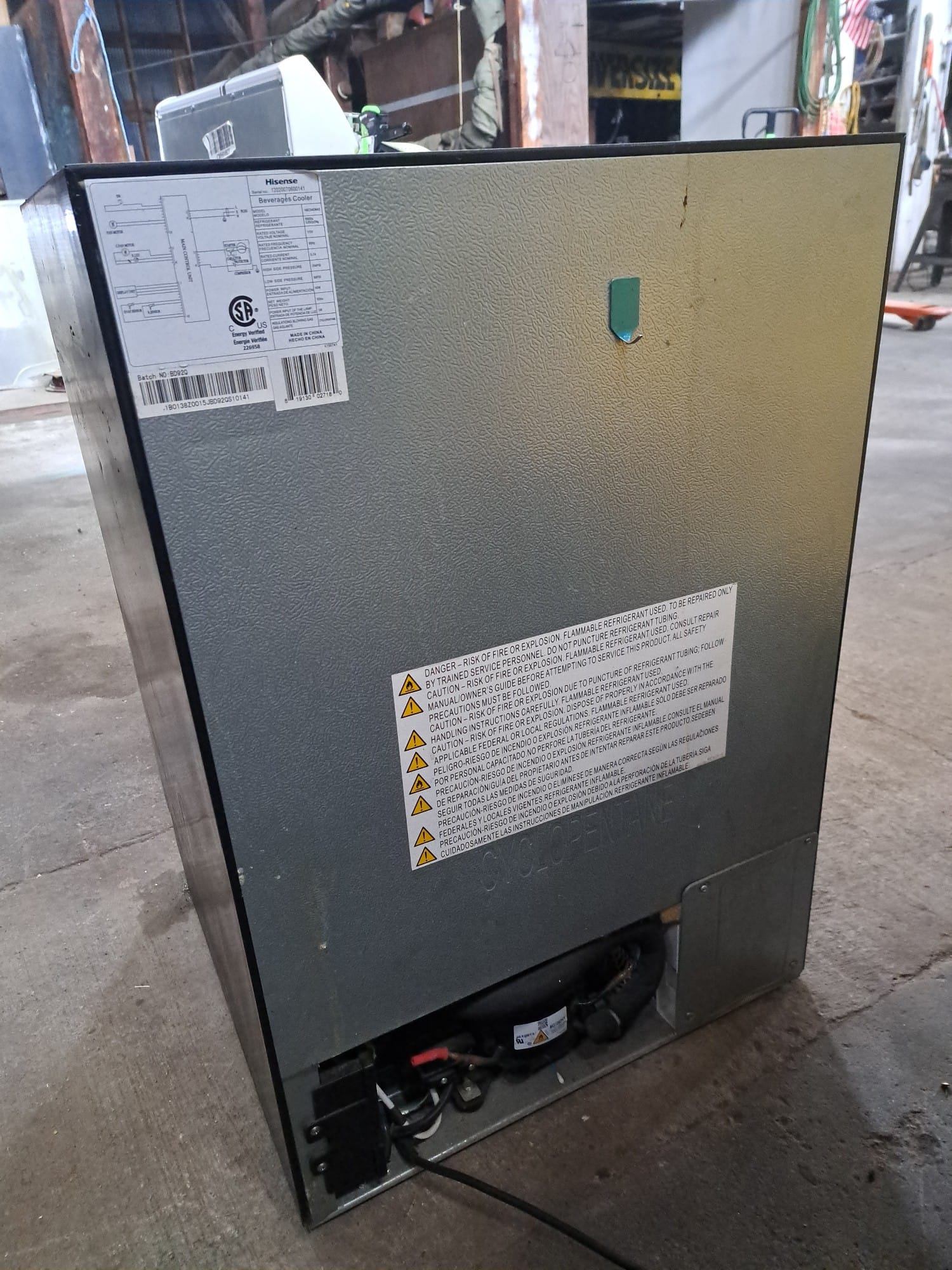 956 Hisense Beverage cooler 24x24x33 Works, needs cleaned