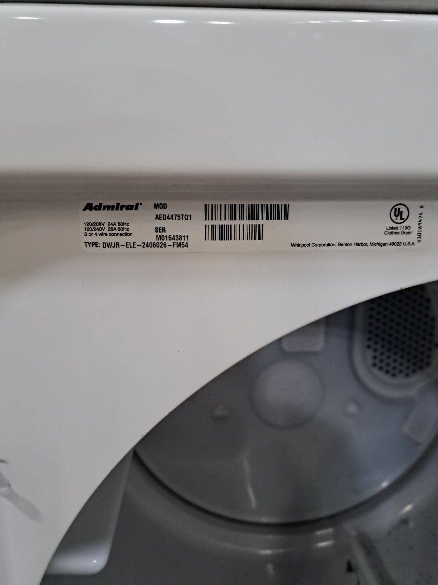 957 Admiral heavy duty Electric dryer , no cord included, some scratches on top
