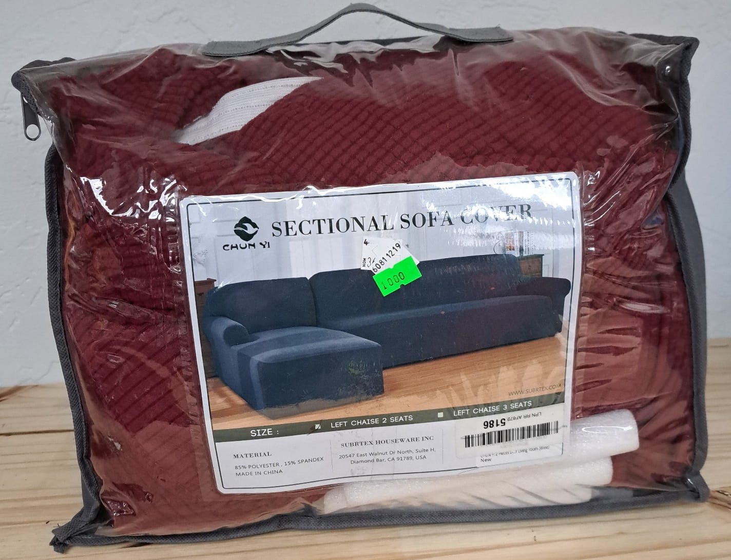 1000 Sofa sectional cover - wine color, poly/spandex blend (for left side chaise, 2-seat section only)