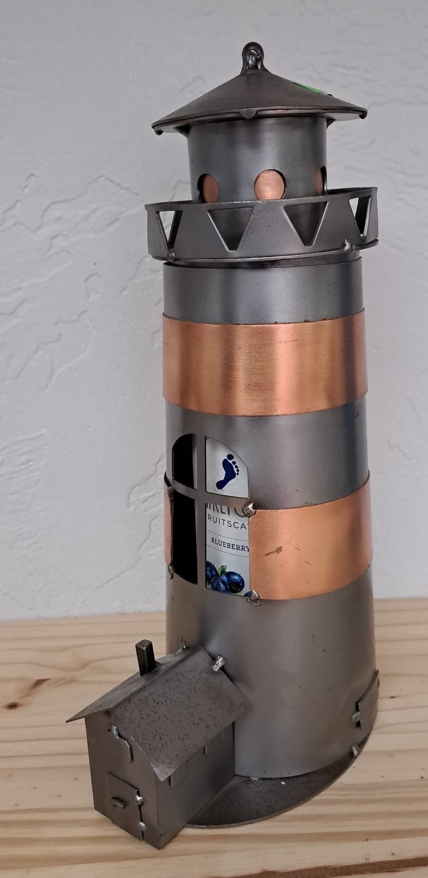 1004 Metal lighthouse wine holder 13in tall
