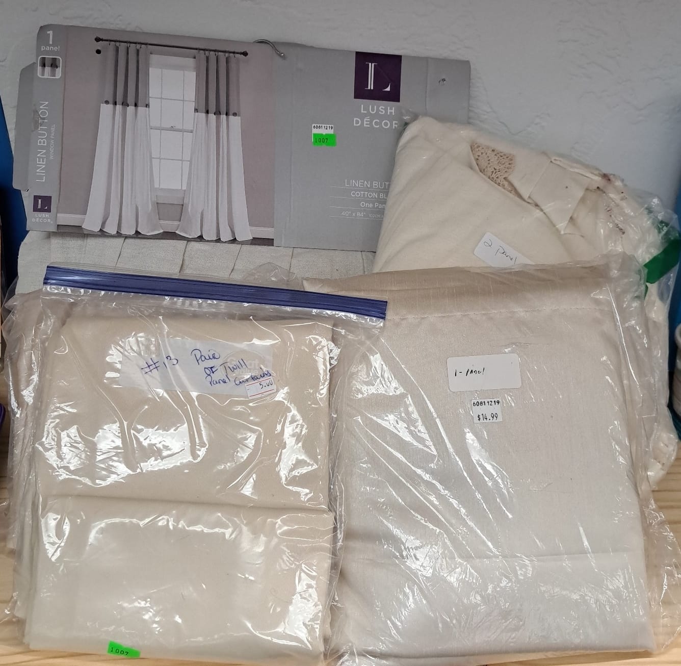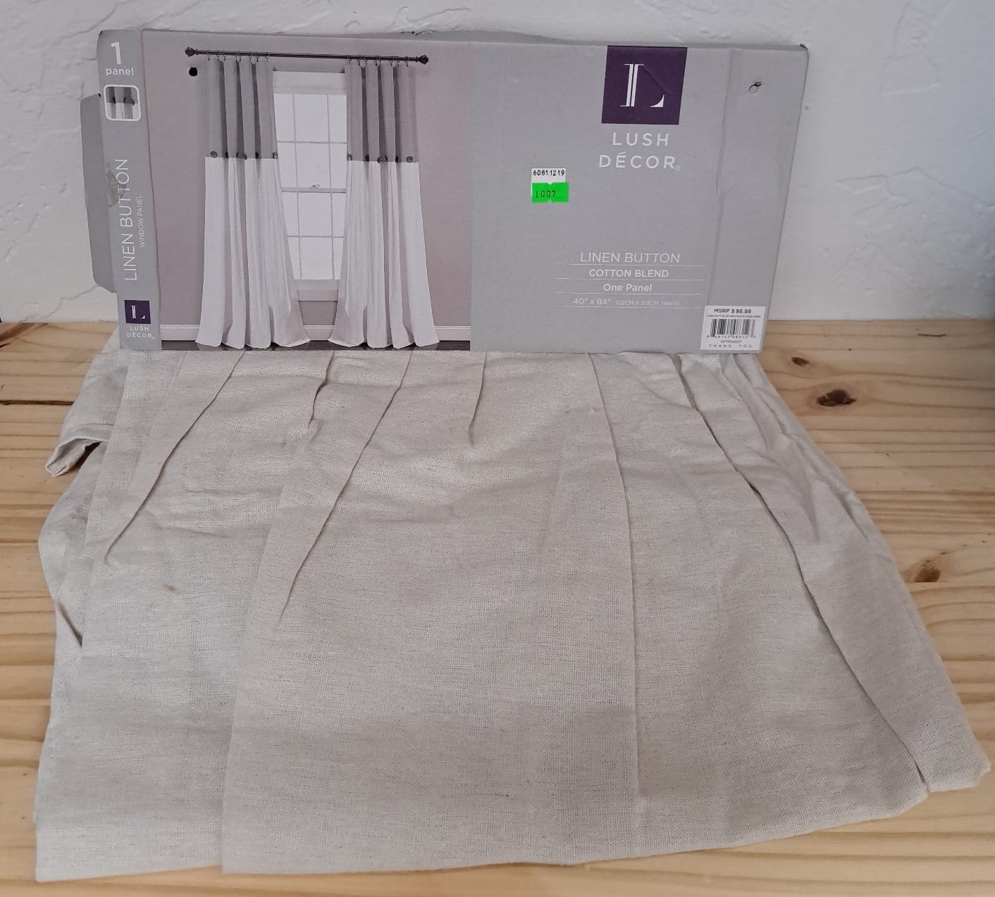 1007 Linen button panel curtain (1-panel) 40x80" and Panel window treatments in assorted sizes