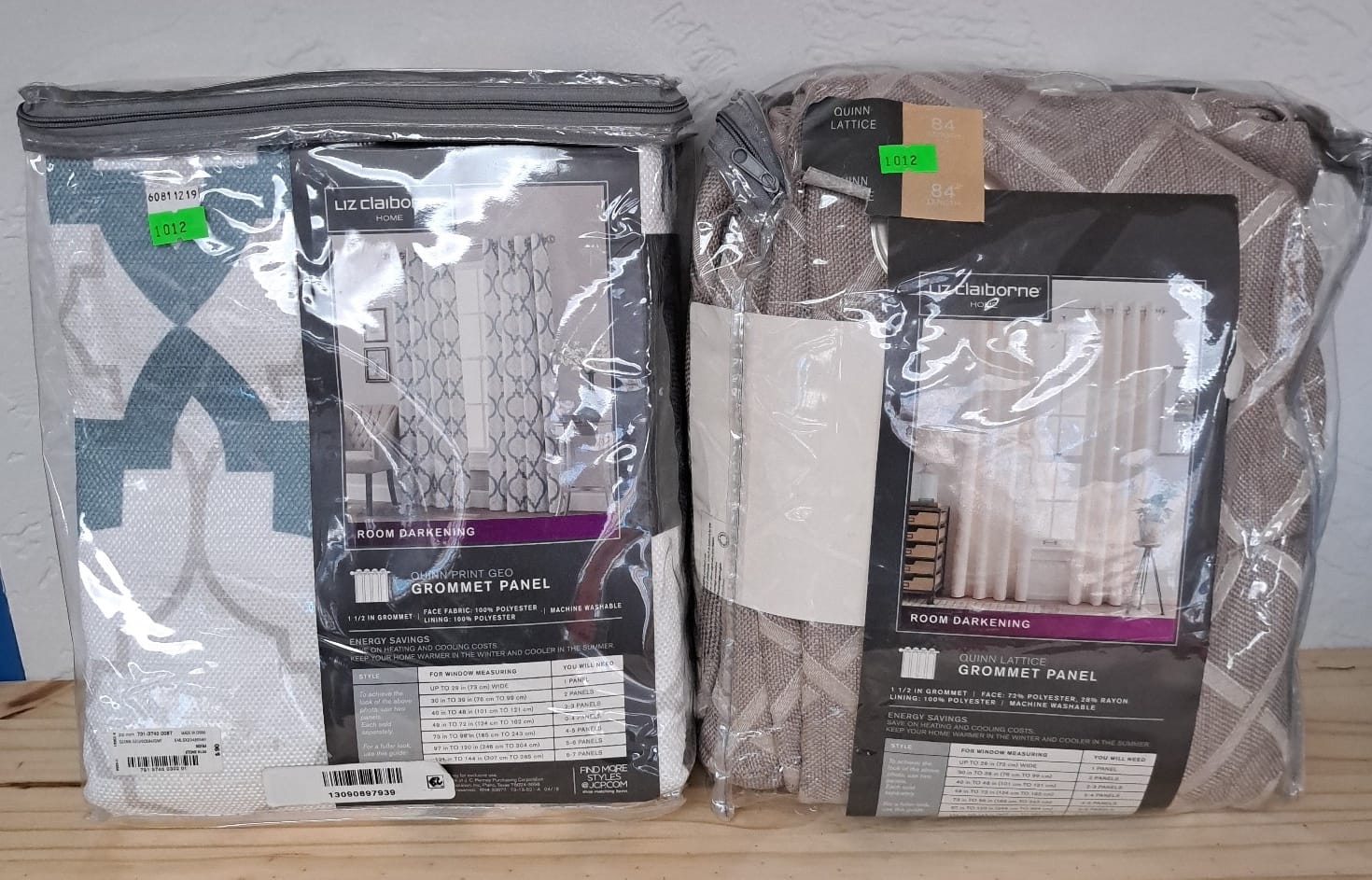 1012 (2) Liz Claiborne Room darkening grommet curtain panels - 2 different styles - 1 panel per pkg - 50x84"
