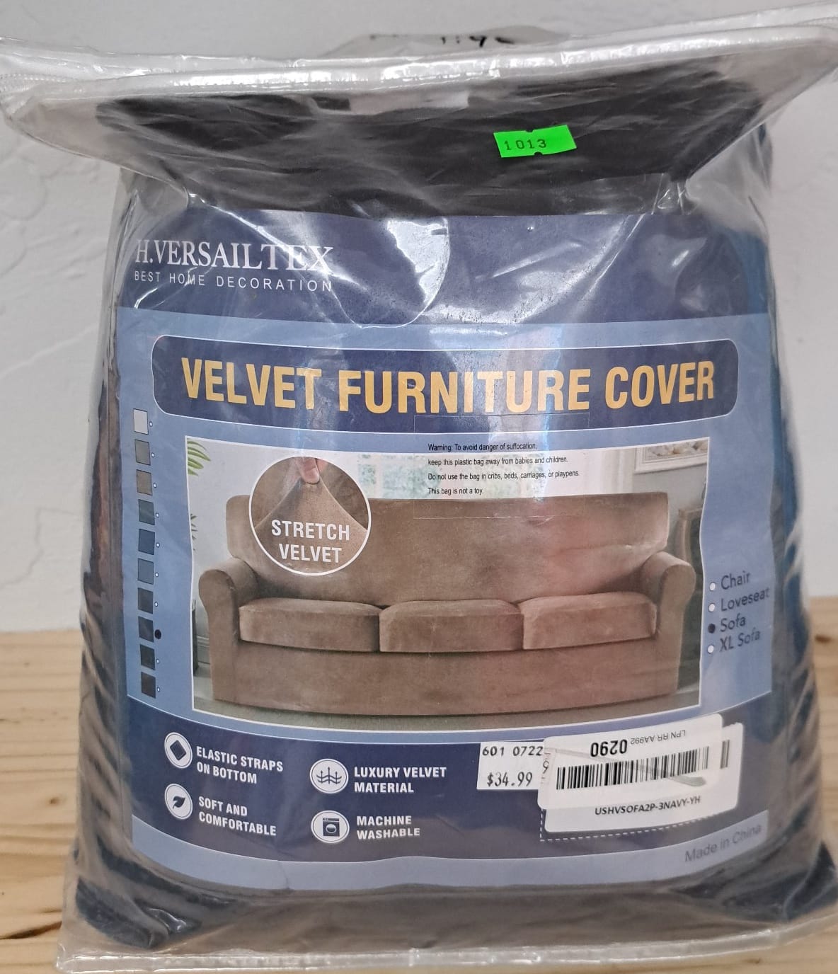 1013 Stretch velvet furniture cover - sofa size in navy color