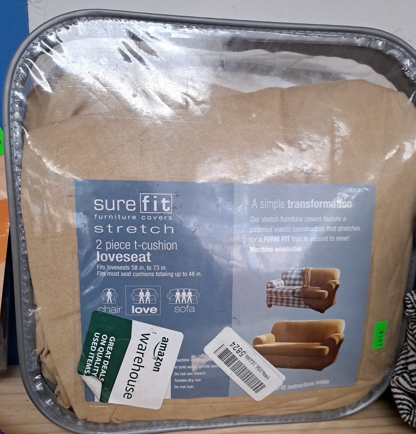 1014 Loveseat stretch cover (2-piece, T-cushion) fits 58-73", Rod pocket panel 50x84", Window panels 48x84"