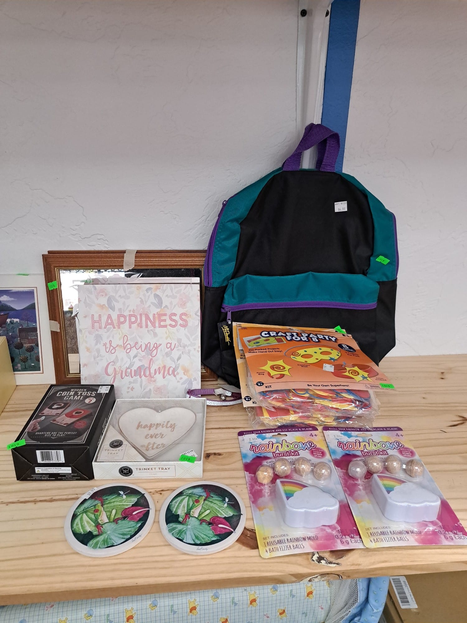 1019 Mirrors, coin toss game, picture, bath fizzer balls, craft party projects