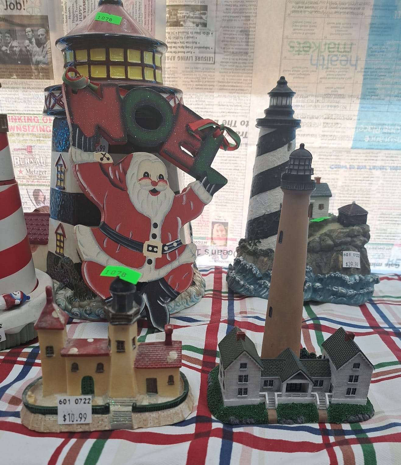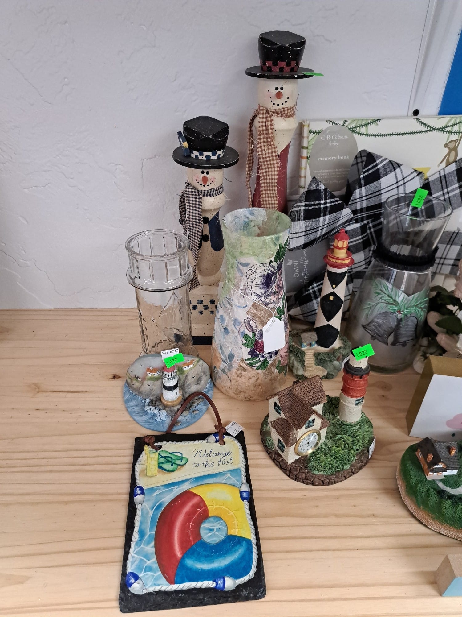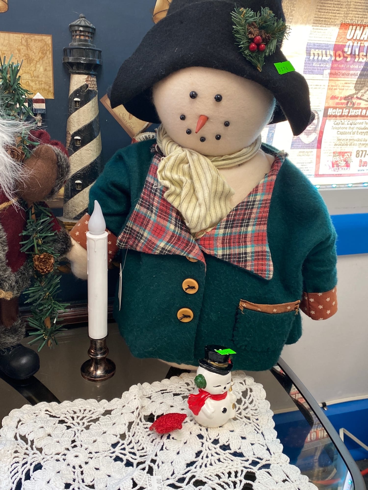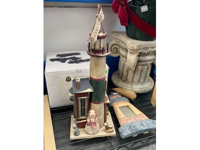 1022 Lighthouses, figurines, snowmen, decanters, decorations