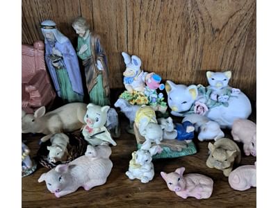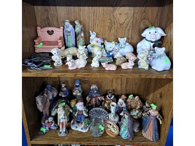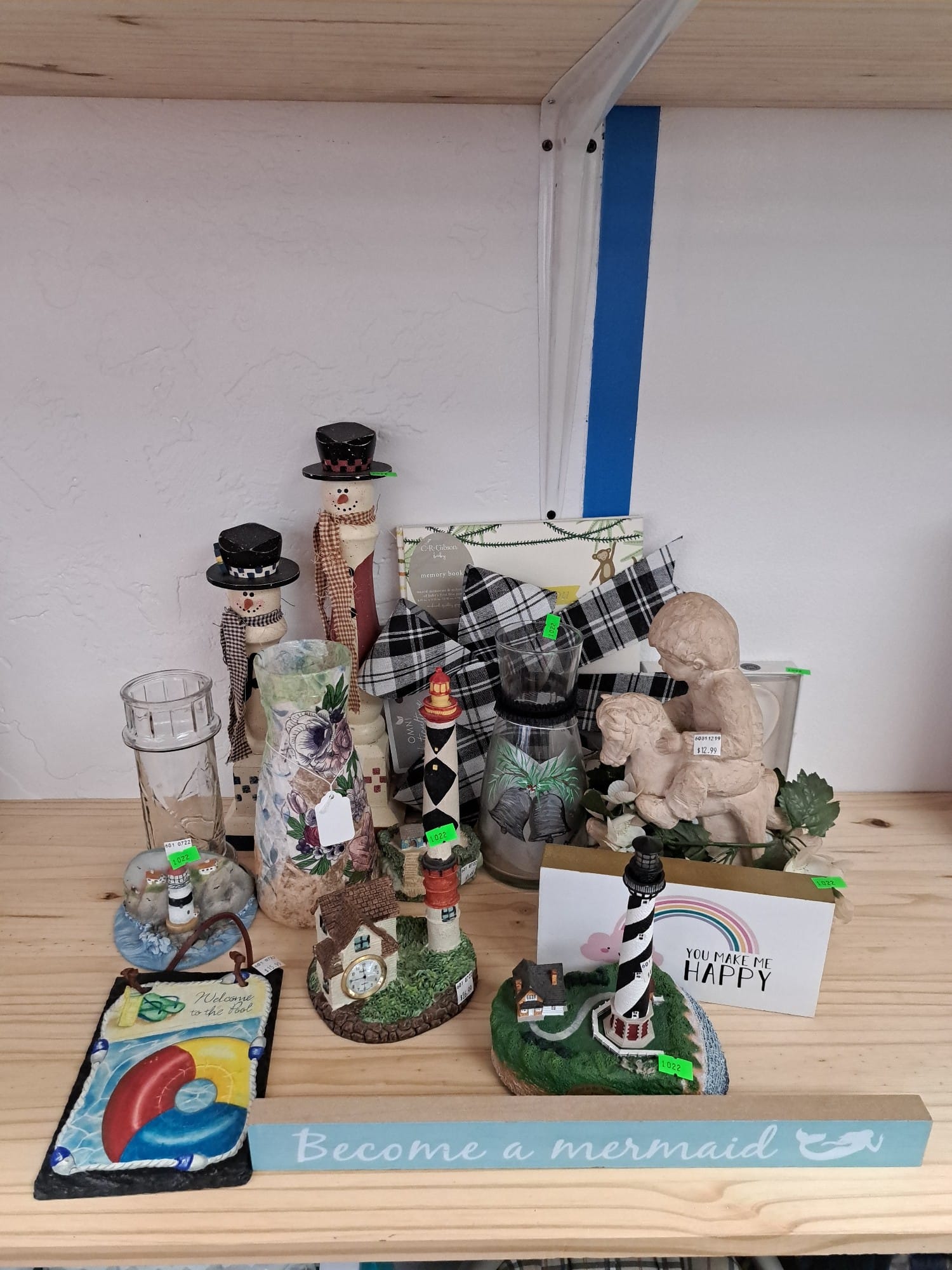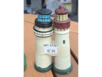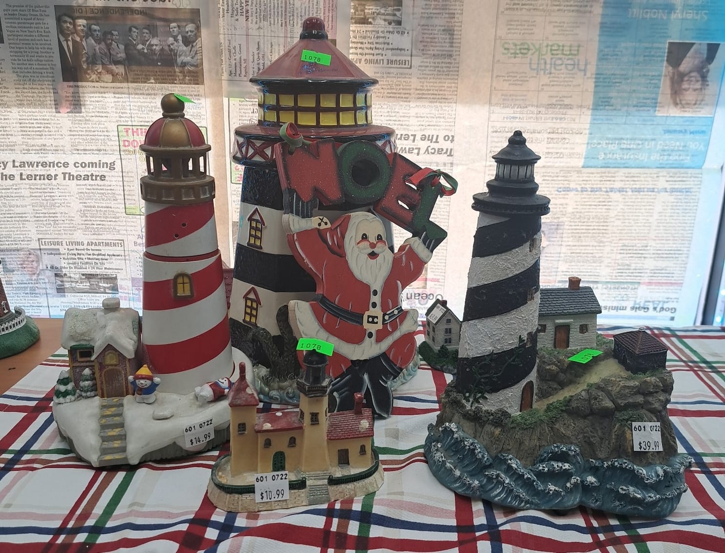 1022 Lighthouses, figurines, snowmen, decanters, decorations