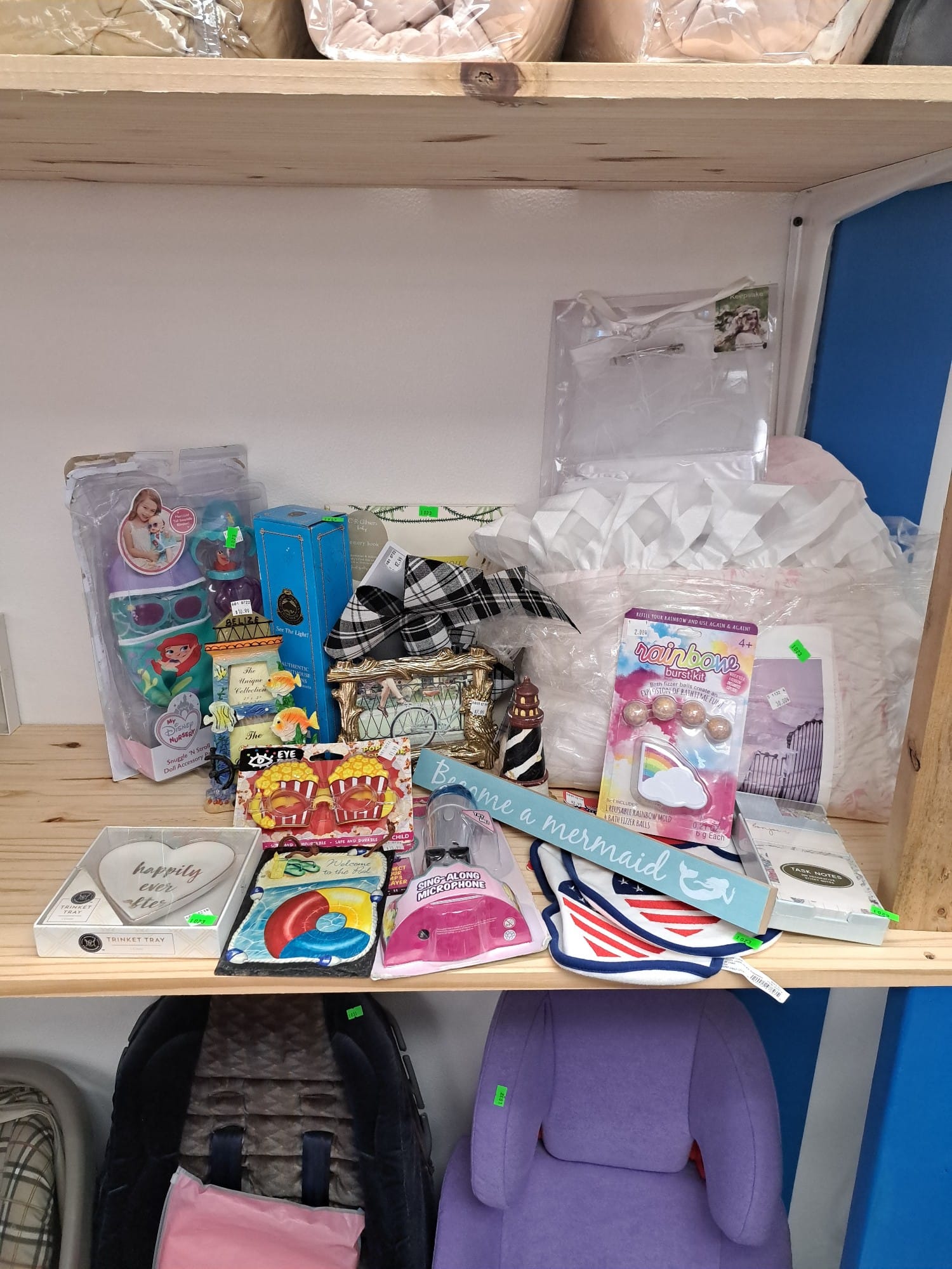 1023 Crib bedding, doll accessories, bibs, lighthouse decor, sing along microphone & more