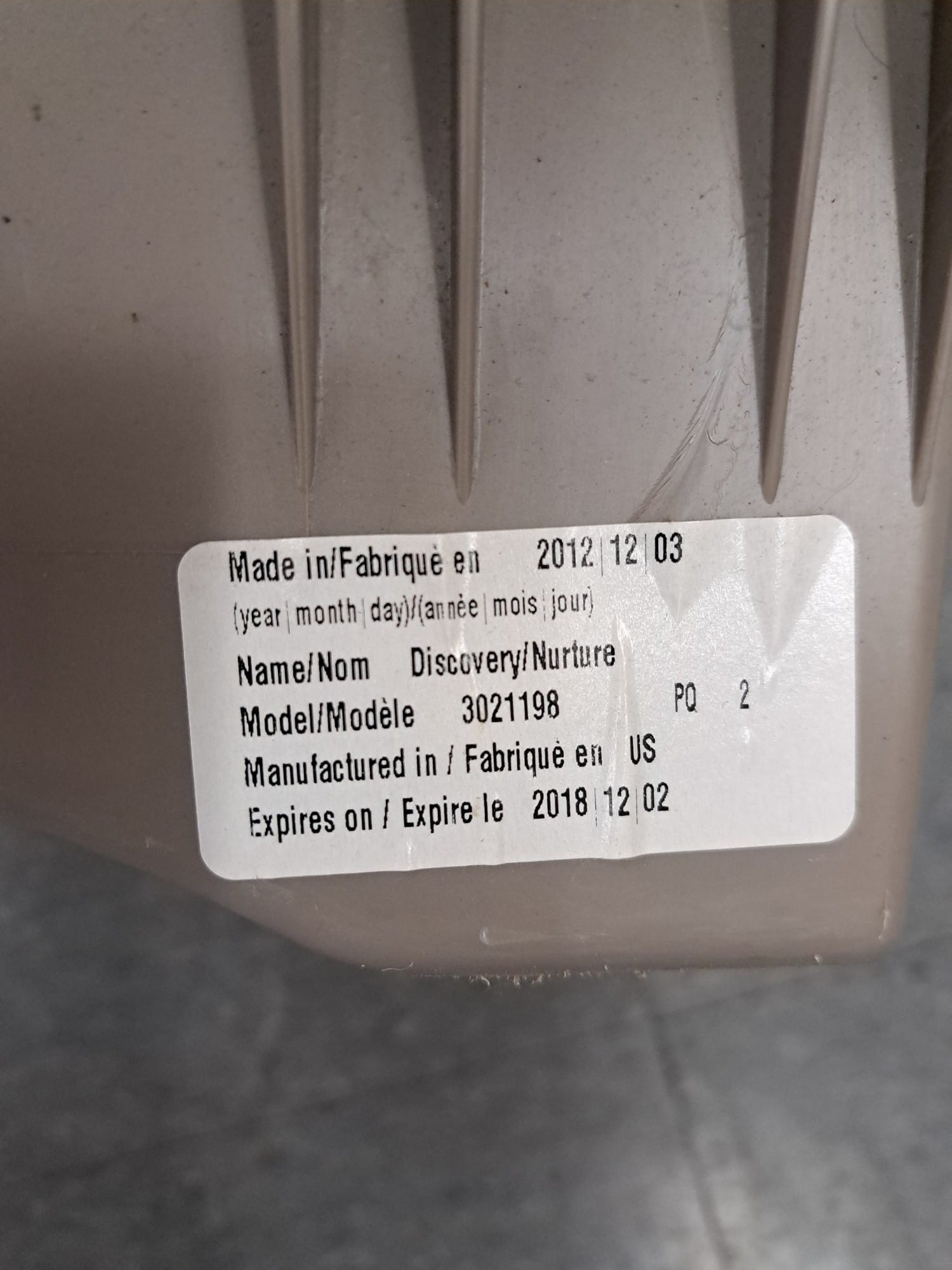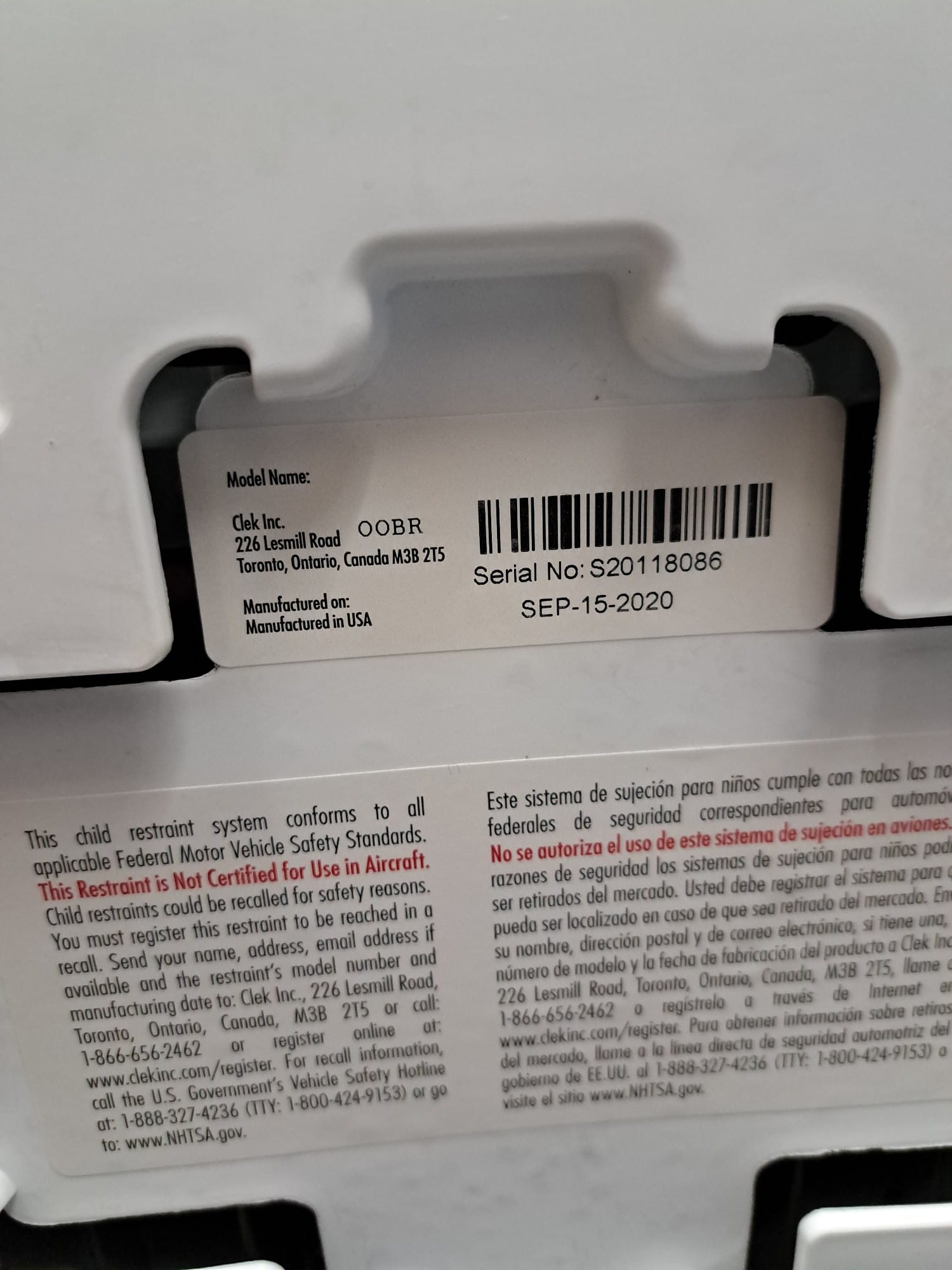 1030 Evenflo car seat