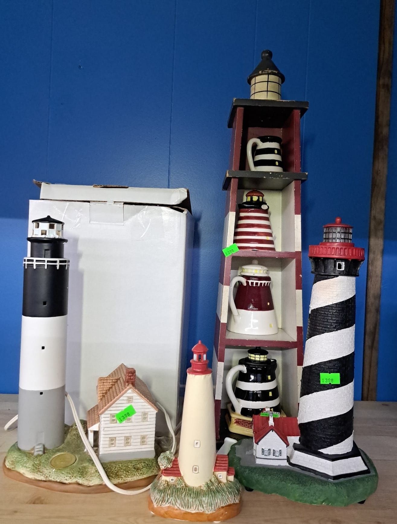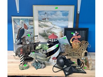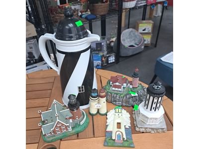 1020 Lighthouses, model lighthouse beacon with transformer, picture, figurines, bottle cork, pottery dishes