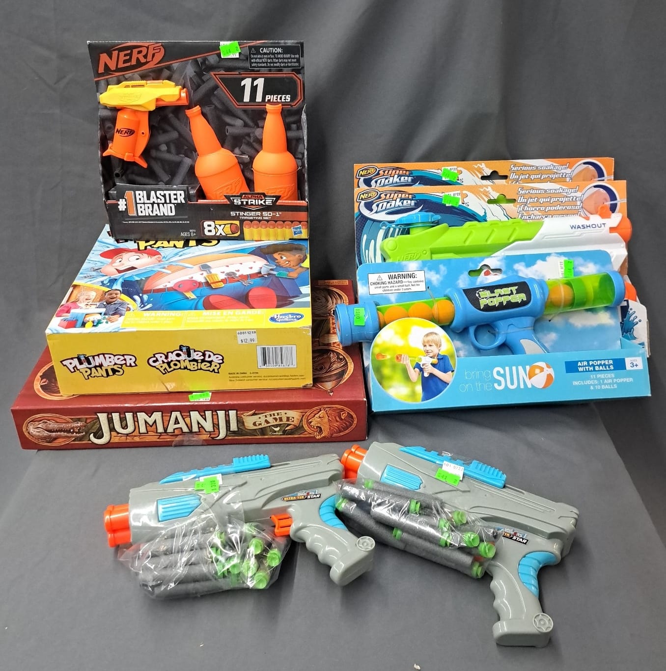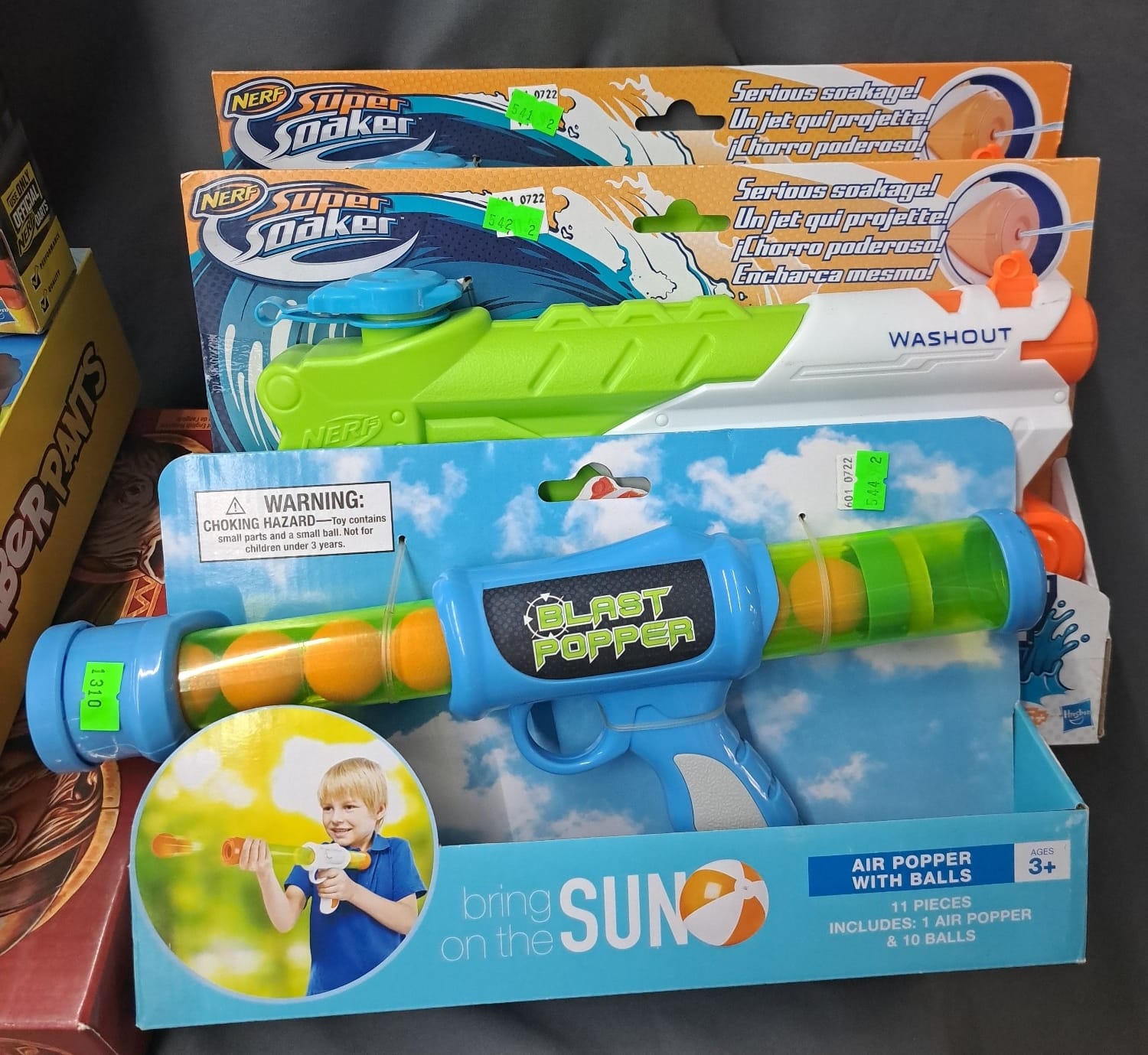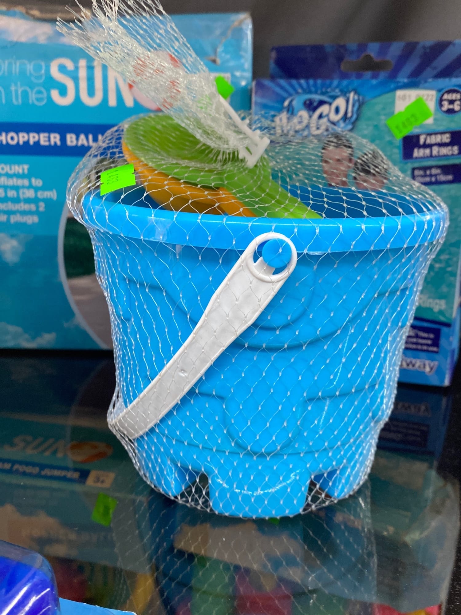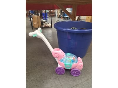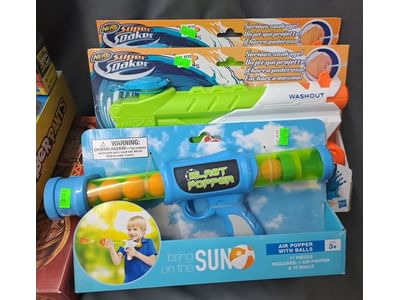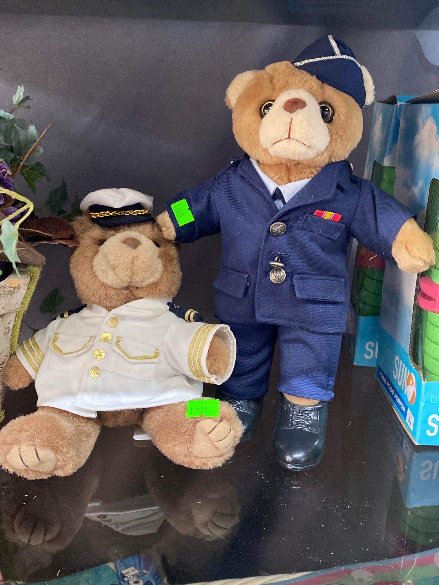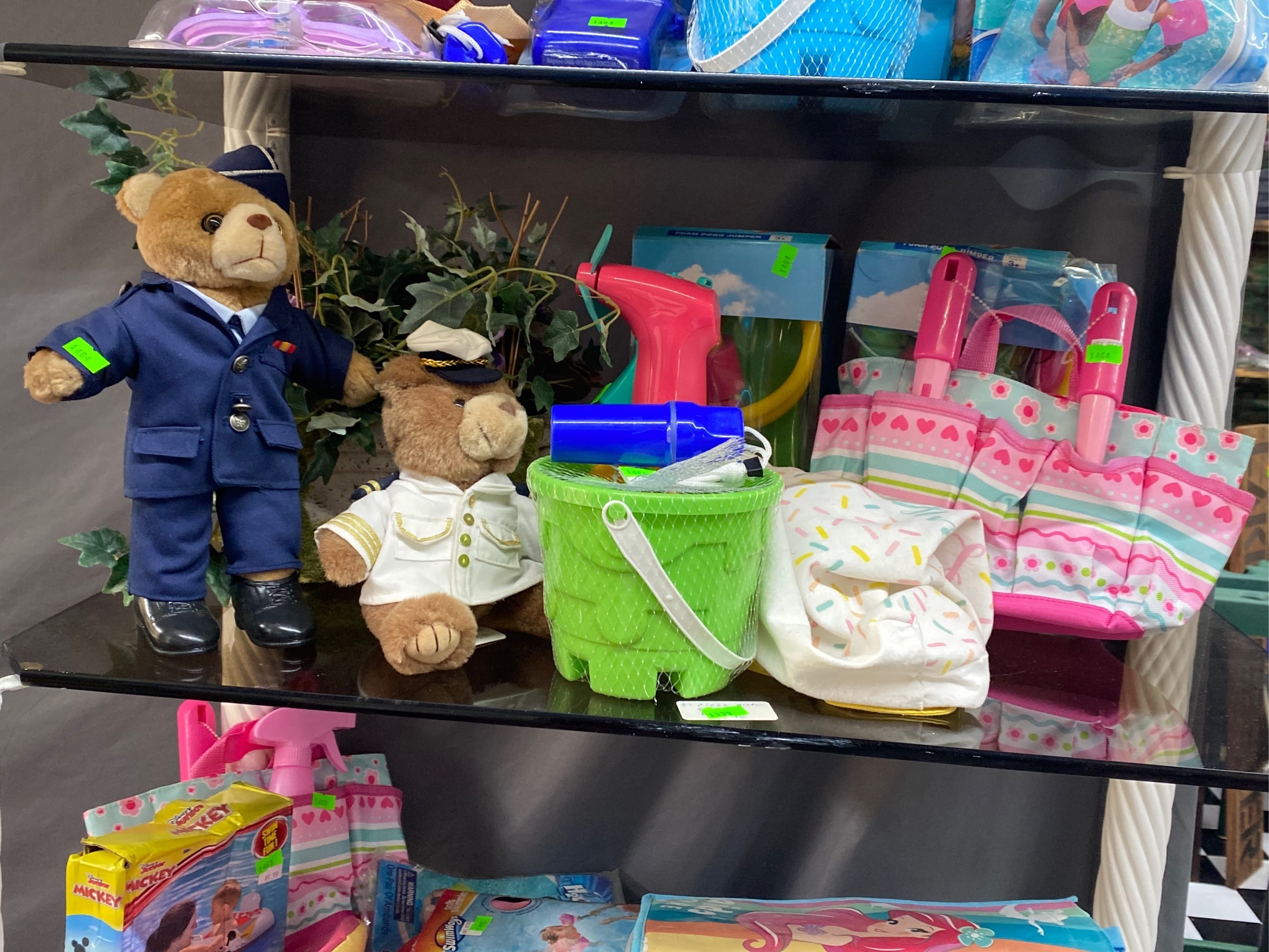 1464 Foam pogo jumper, beach bucket, water toys, mister, bears in service clothing, planter