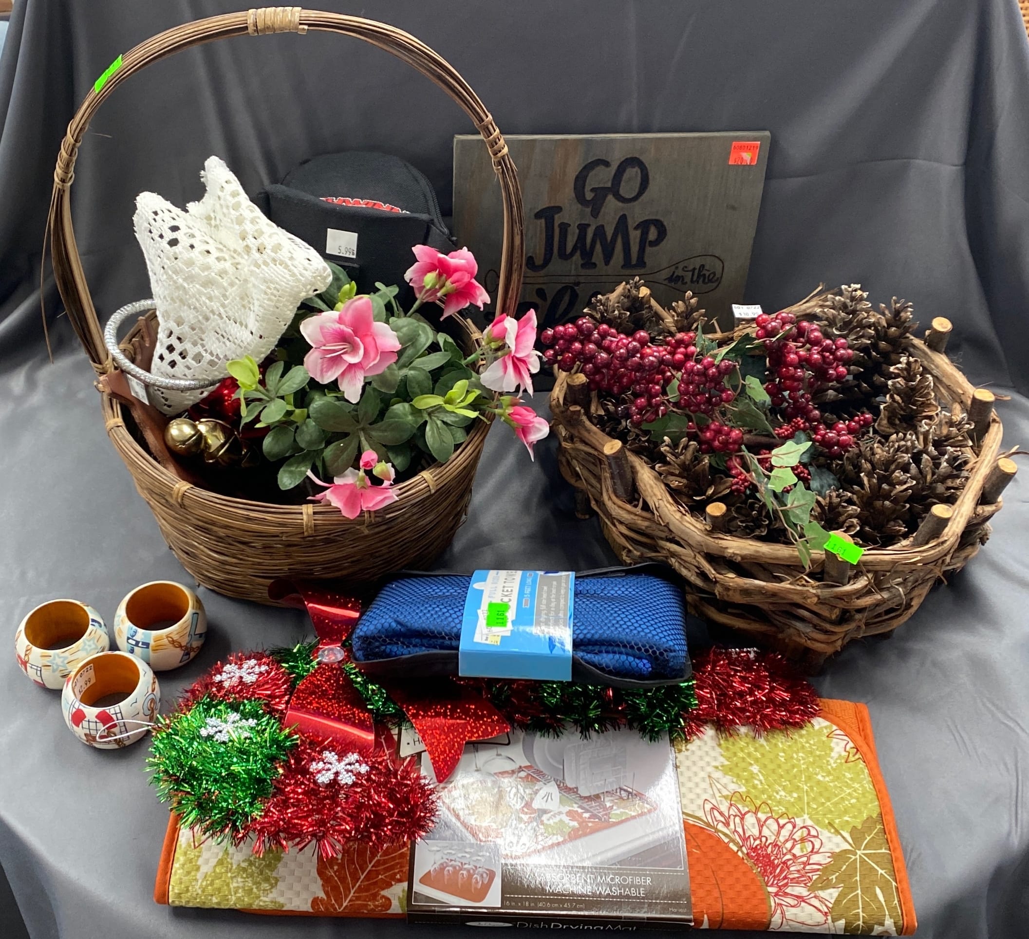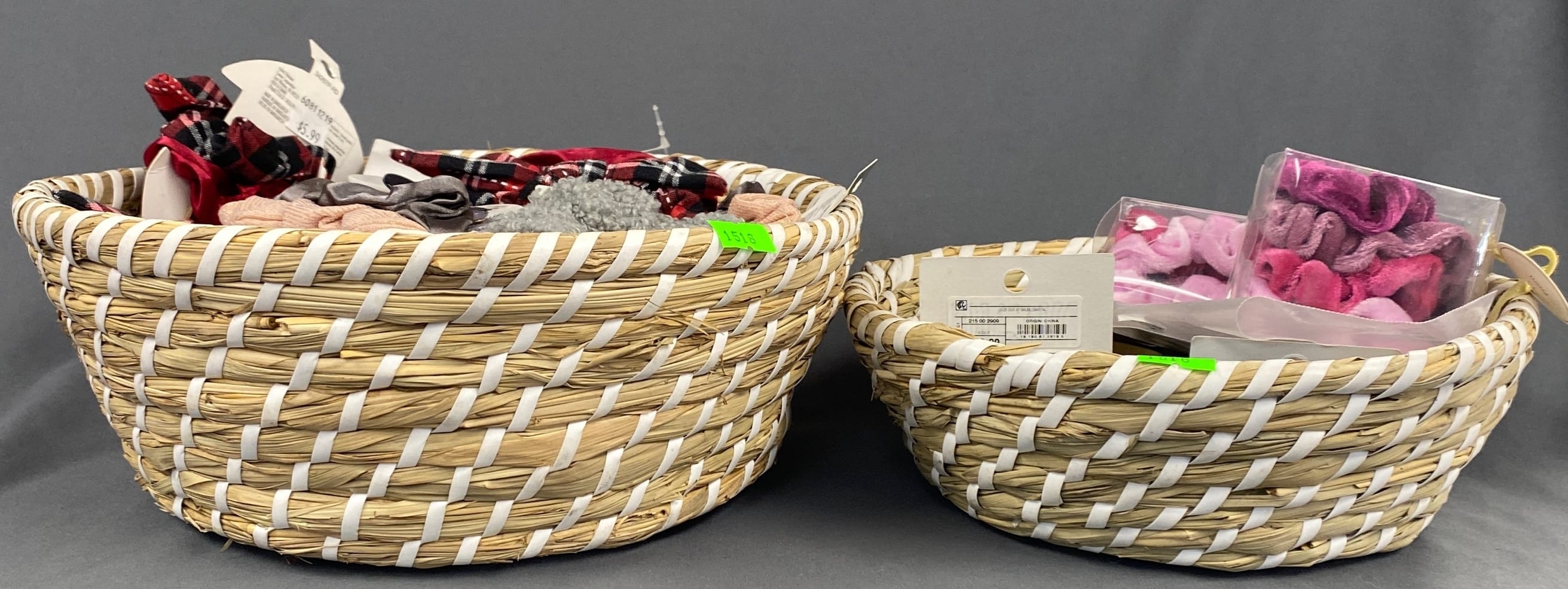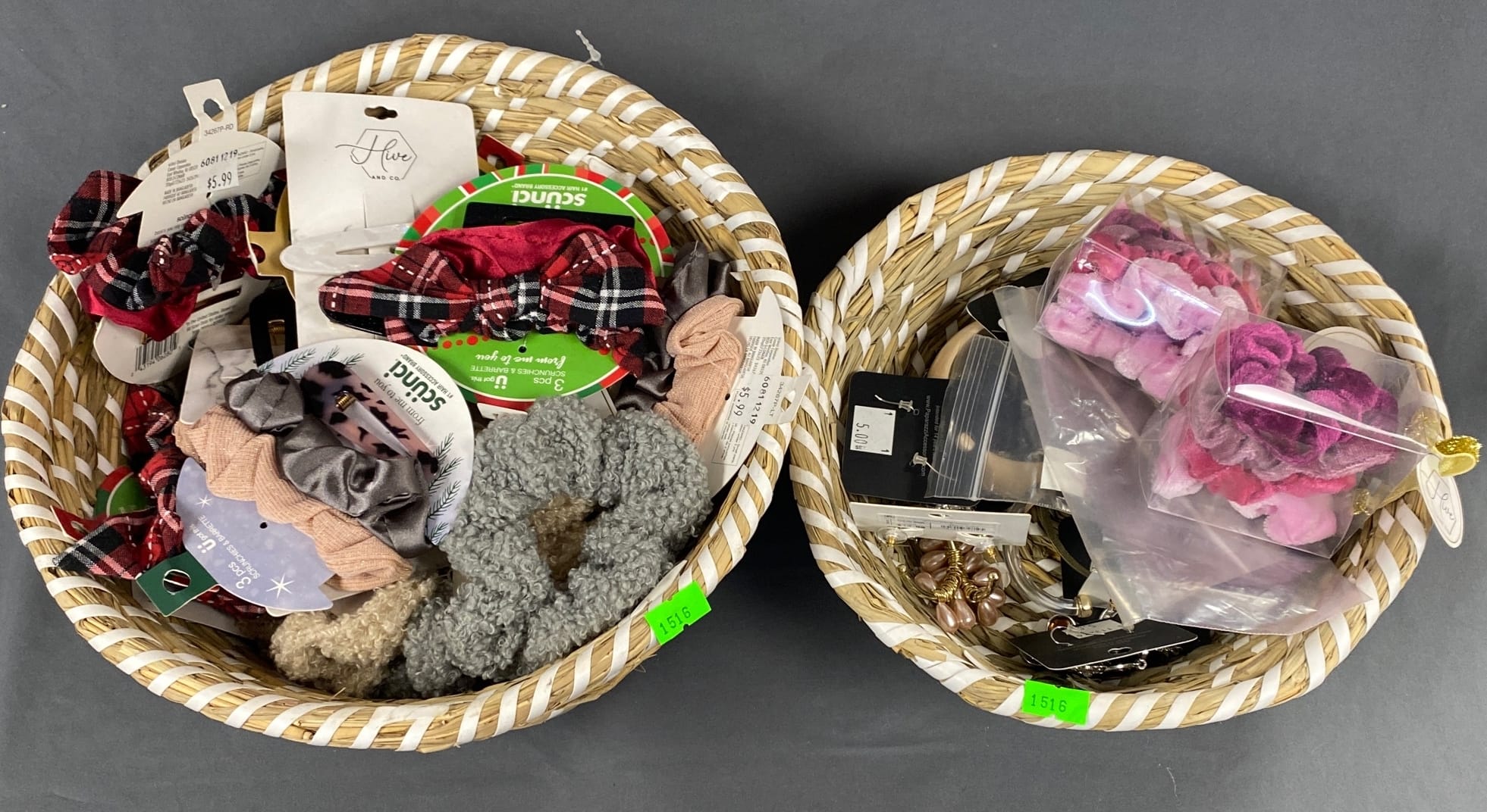 1516 Earrings and hair accessories in woven baskets