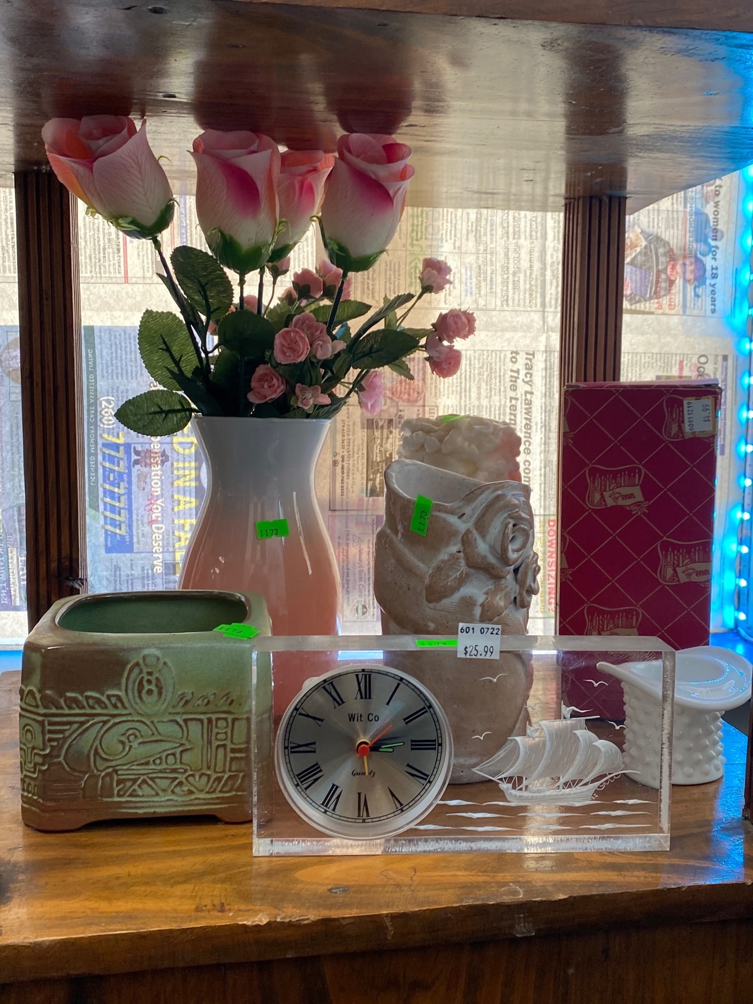 1453 Pine wood collectibles shelf 22x23x3.5
