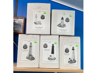 291 Light house figures, clock, Danbury mint "block island southeast Light house"