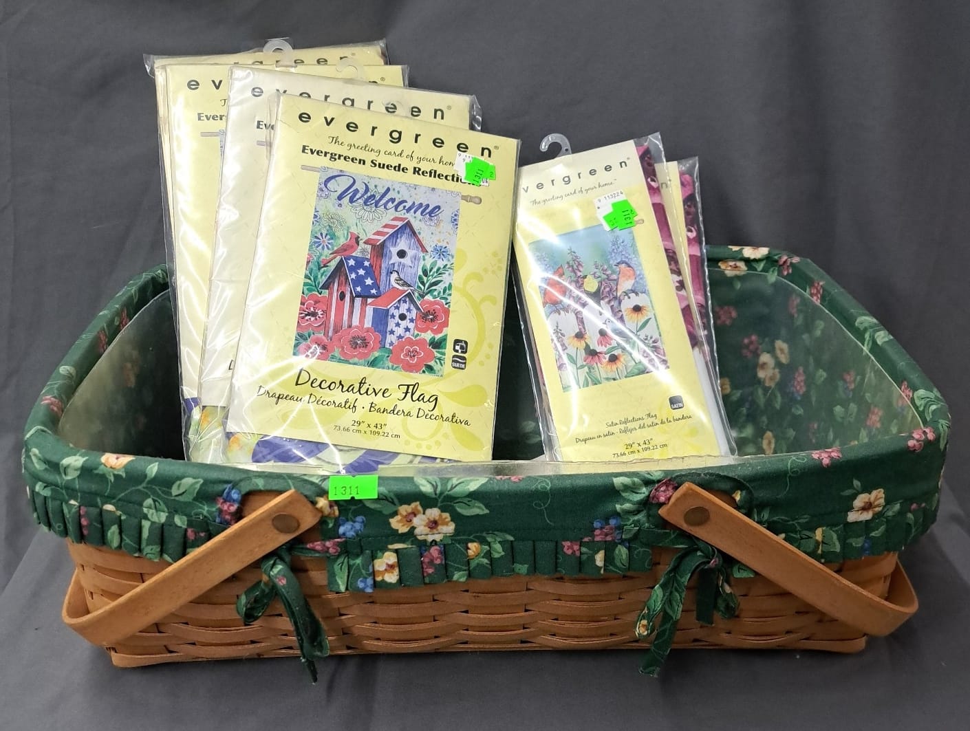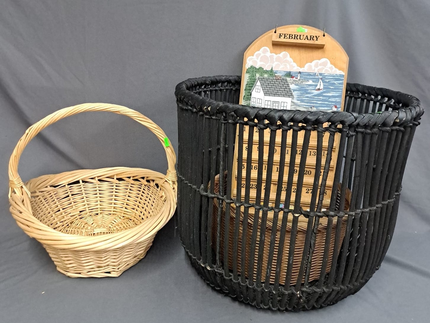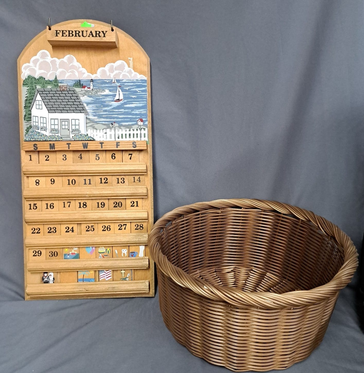 1440 Wood interchangeable calendar, 3 baskets, dark stained largest 21x17