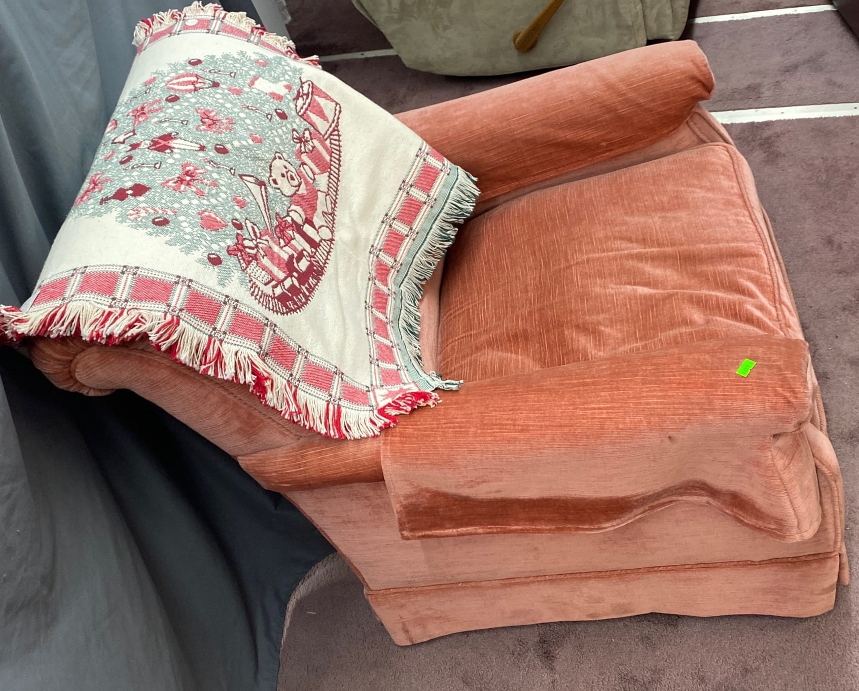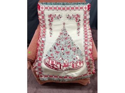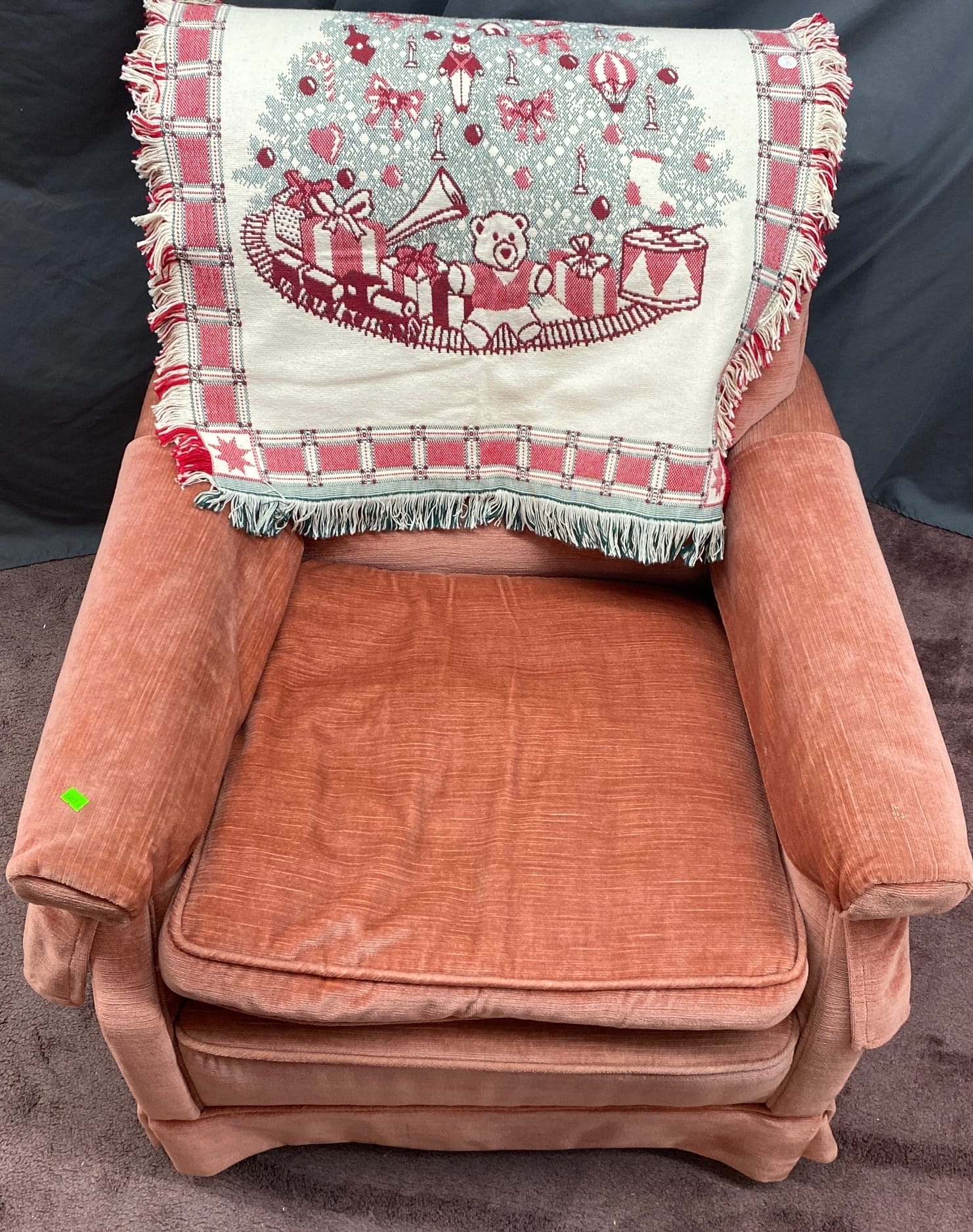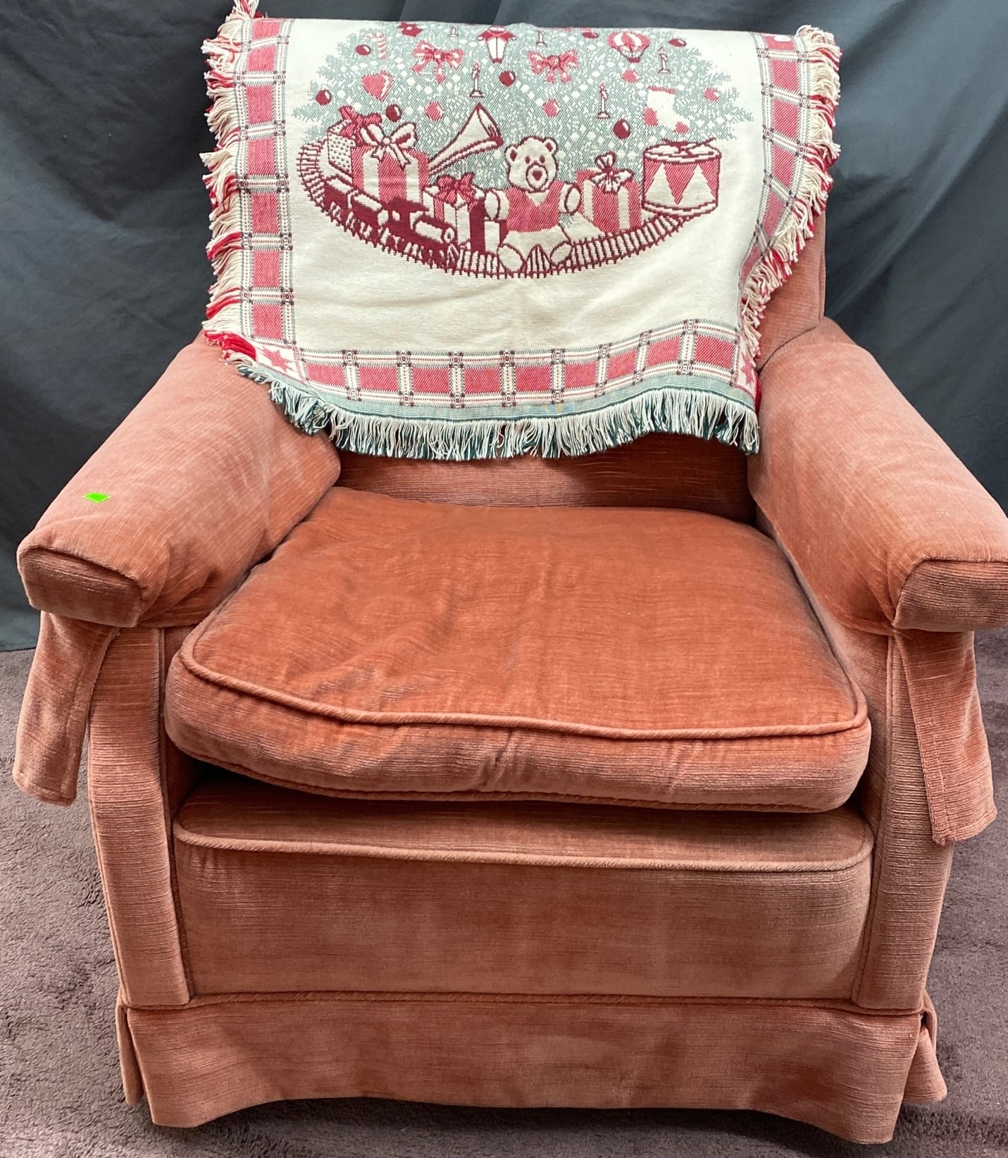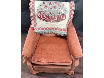1457 Upolstered chair 30x35x33 with holiday throw 28x40