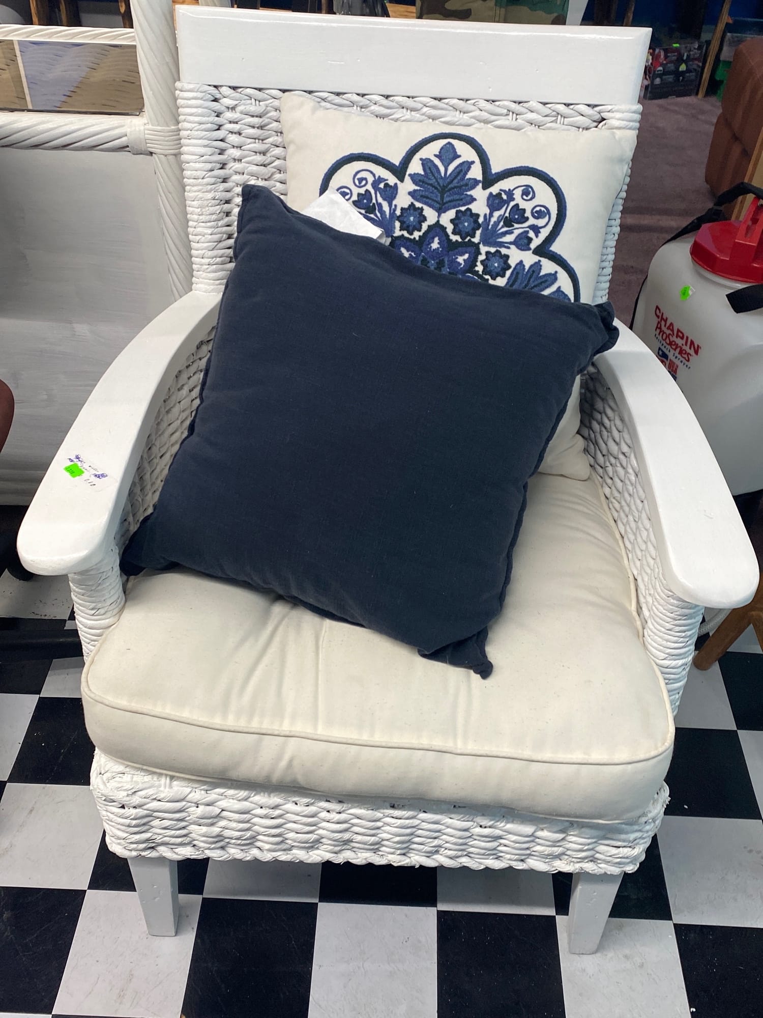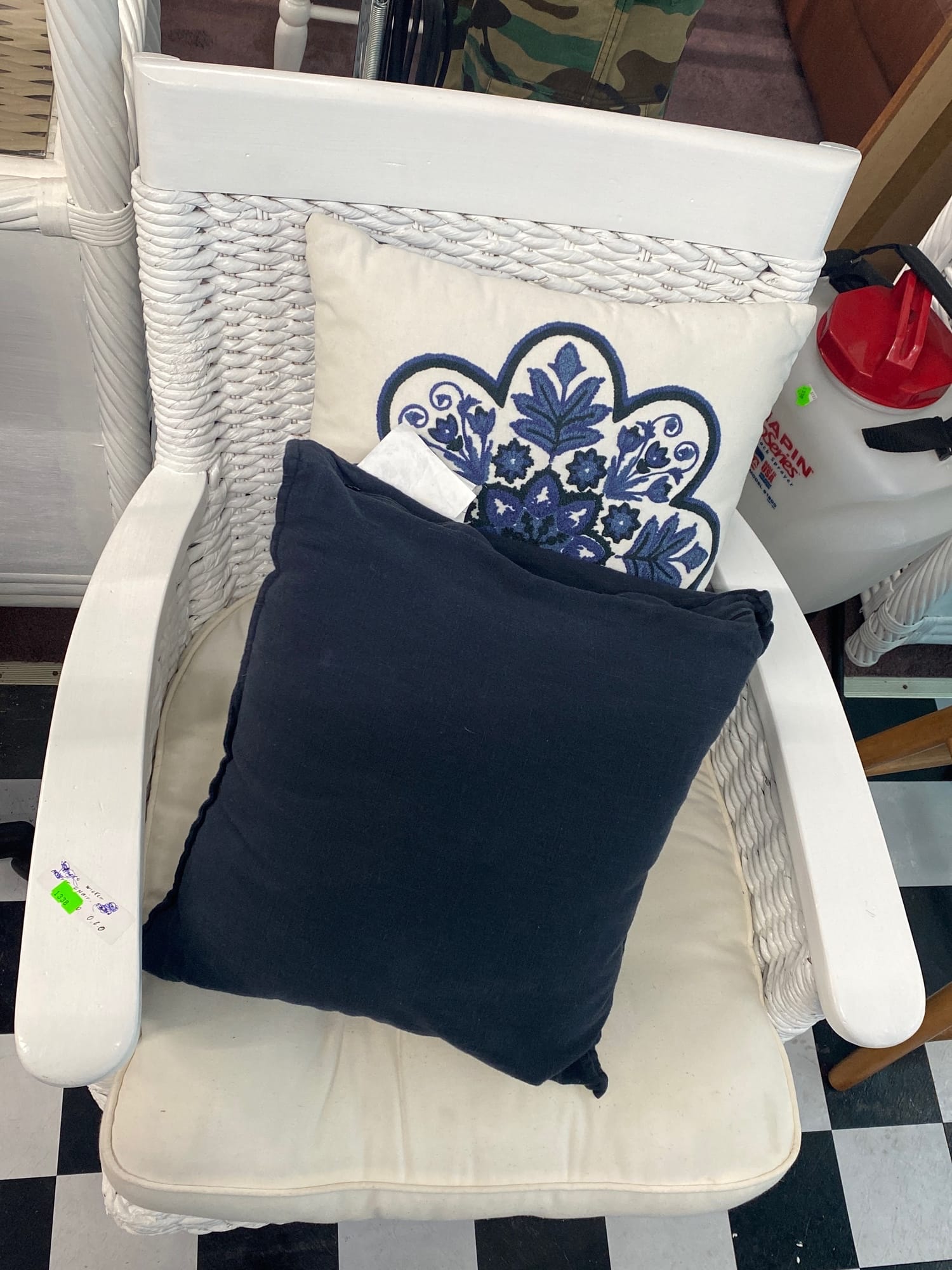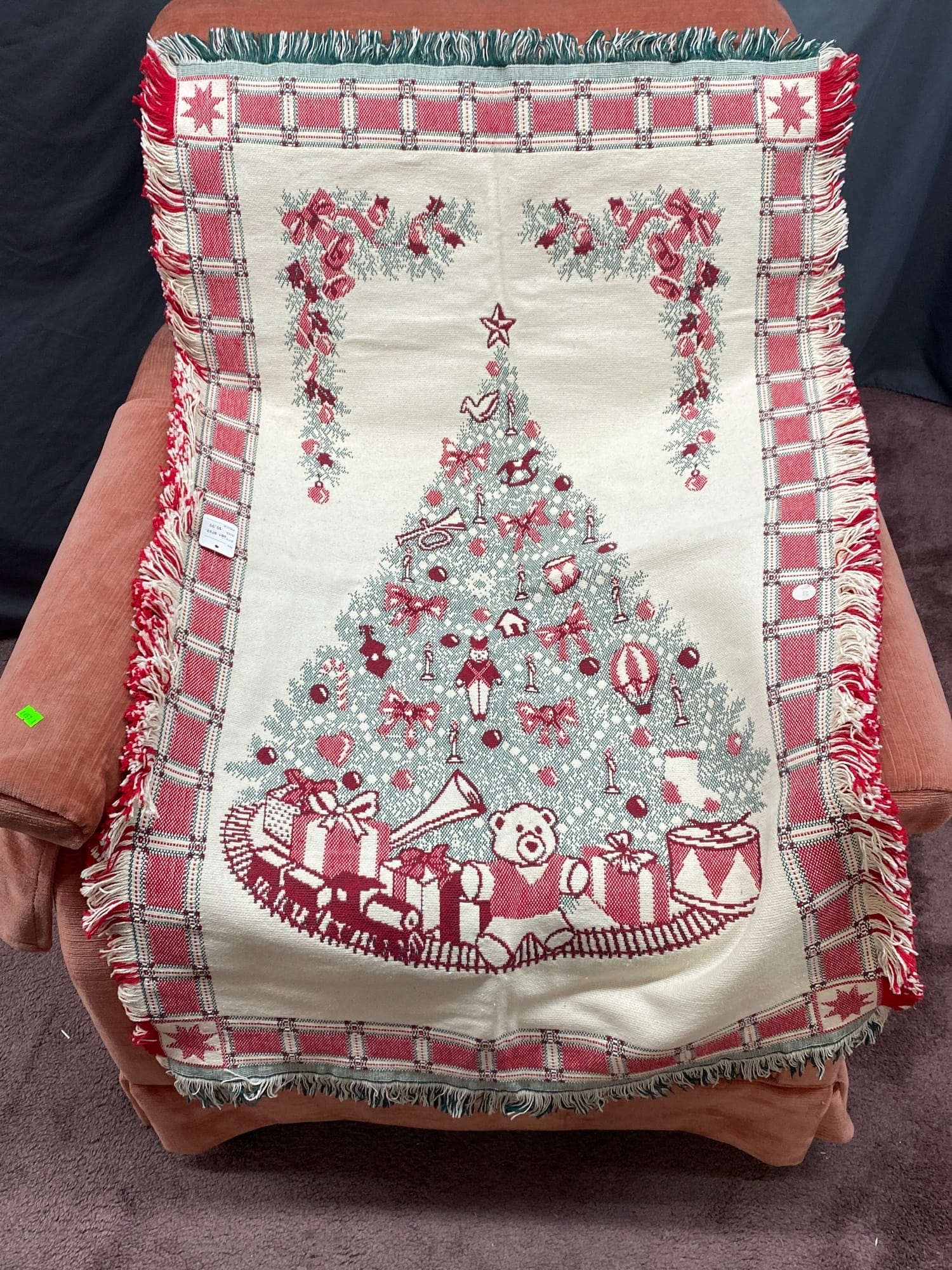 1457 Upolstered chair 30x35x33 with holiday throw 28x40