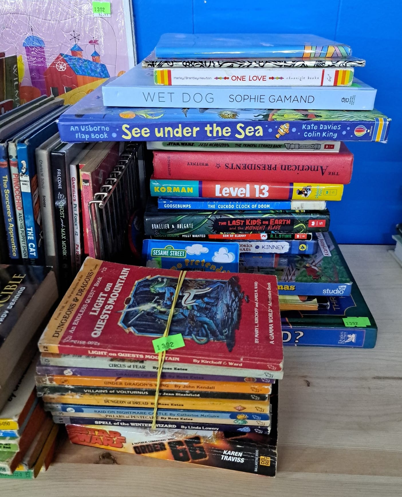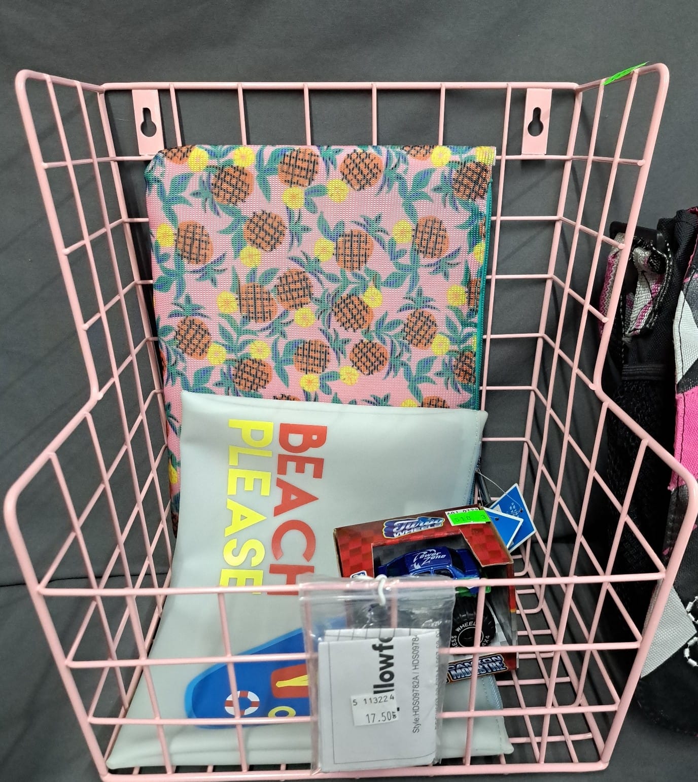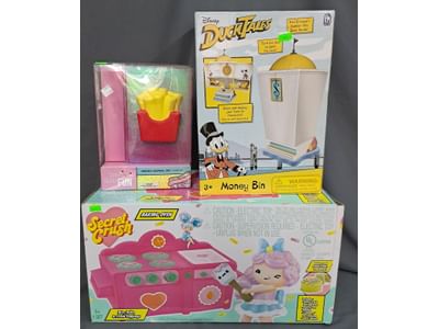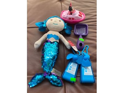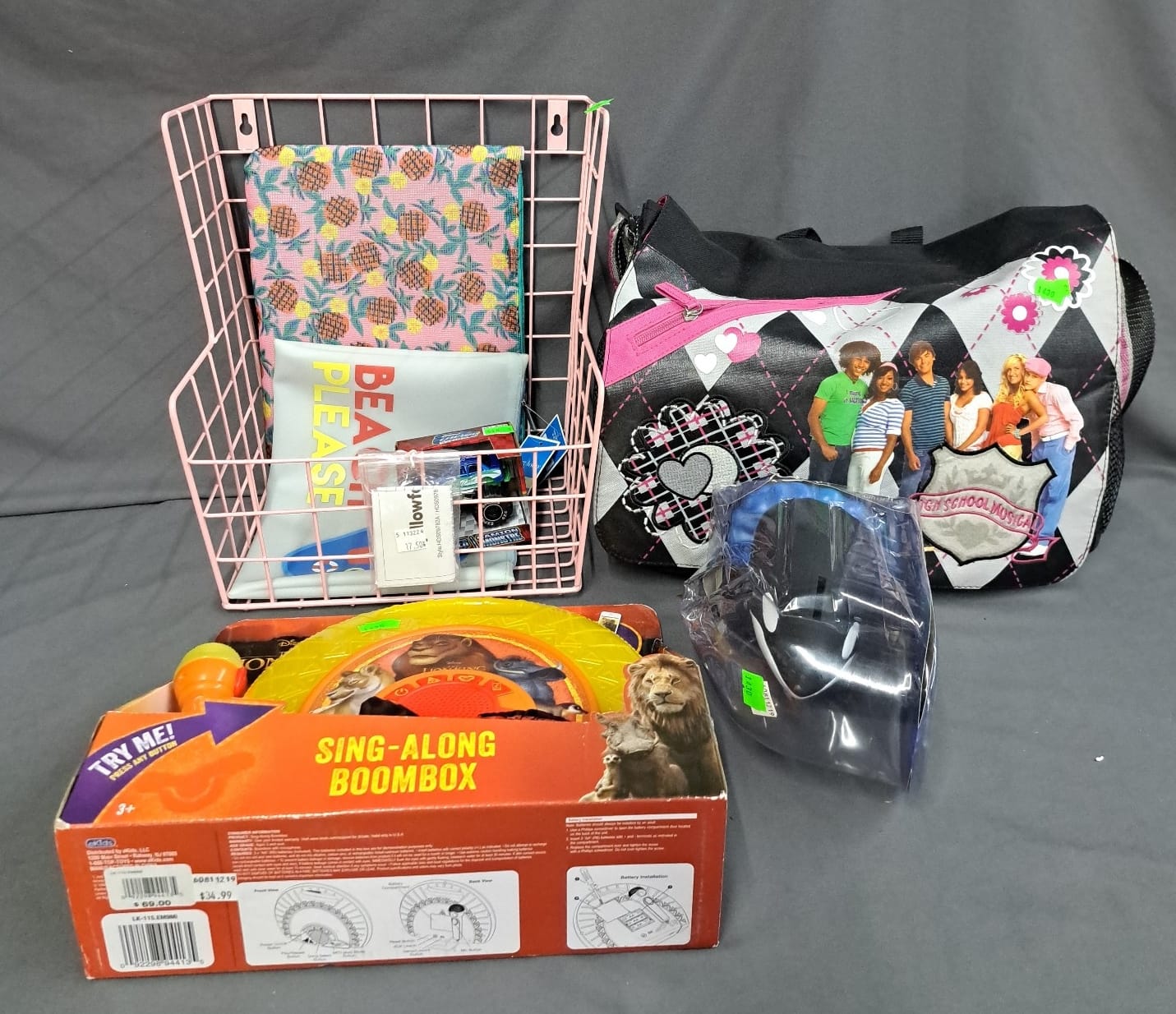 1430 Underwater adventures coin bank whale, lion king sing a long, tote bag, swim suit wet bag, wire basket shelf, monster truck toy