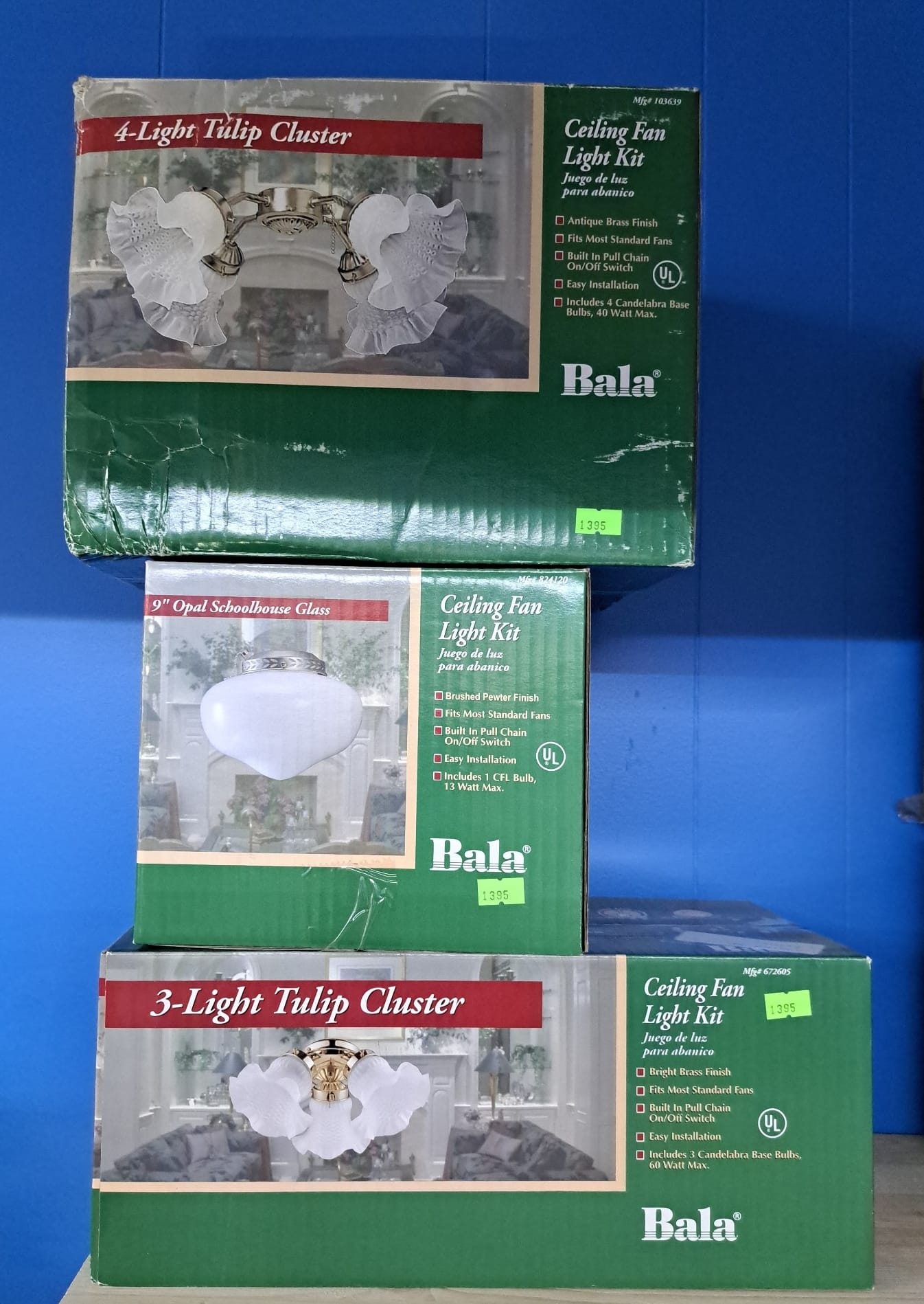 1471 Bala 3 light cluster ceiling fan light kit, new in sealed package