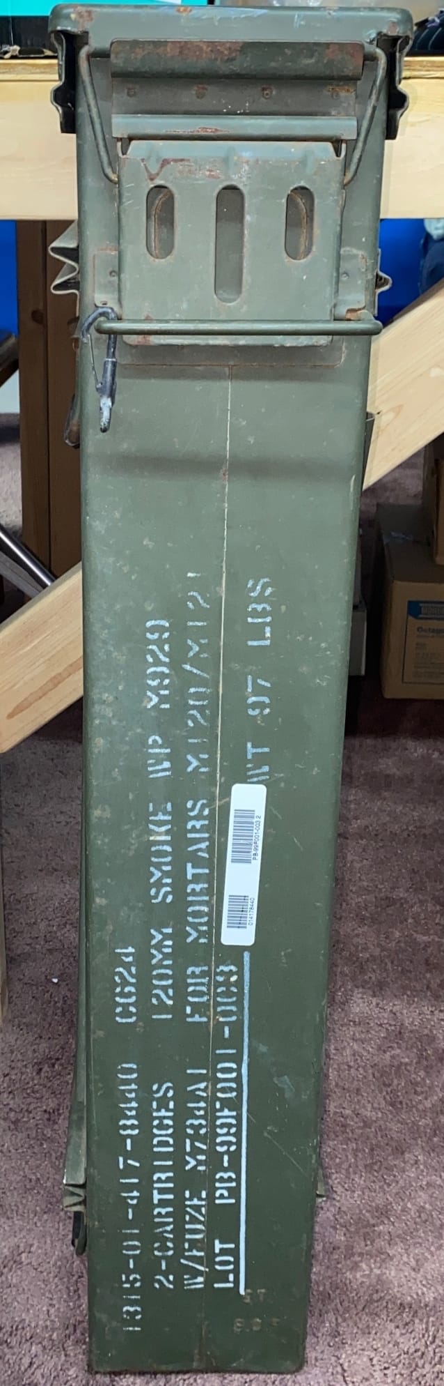 952 Metal Army footlocker no key 30.5x13x16.5 surface rust