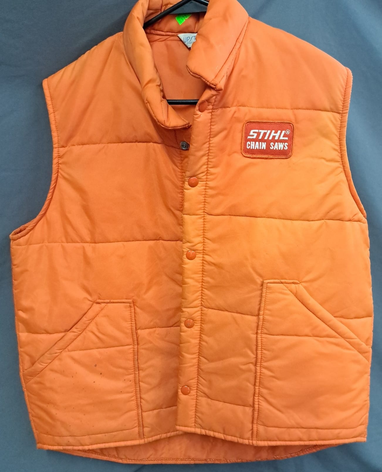 1433 Stihl chainsaws orange vest size large some stains and wear by upstream
