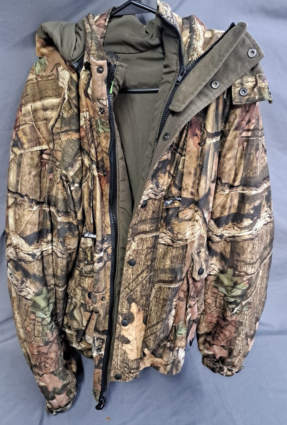 1434 Mossy Oak 2XL camo coat with zip out liner , some wear