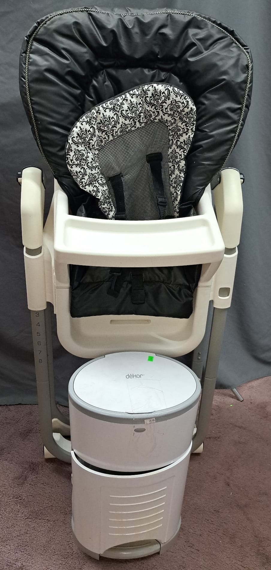 1443 Adjustable height folding Highchair and dékor diaper step pail