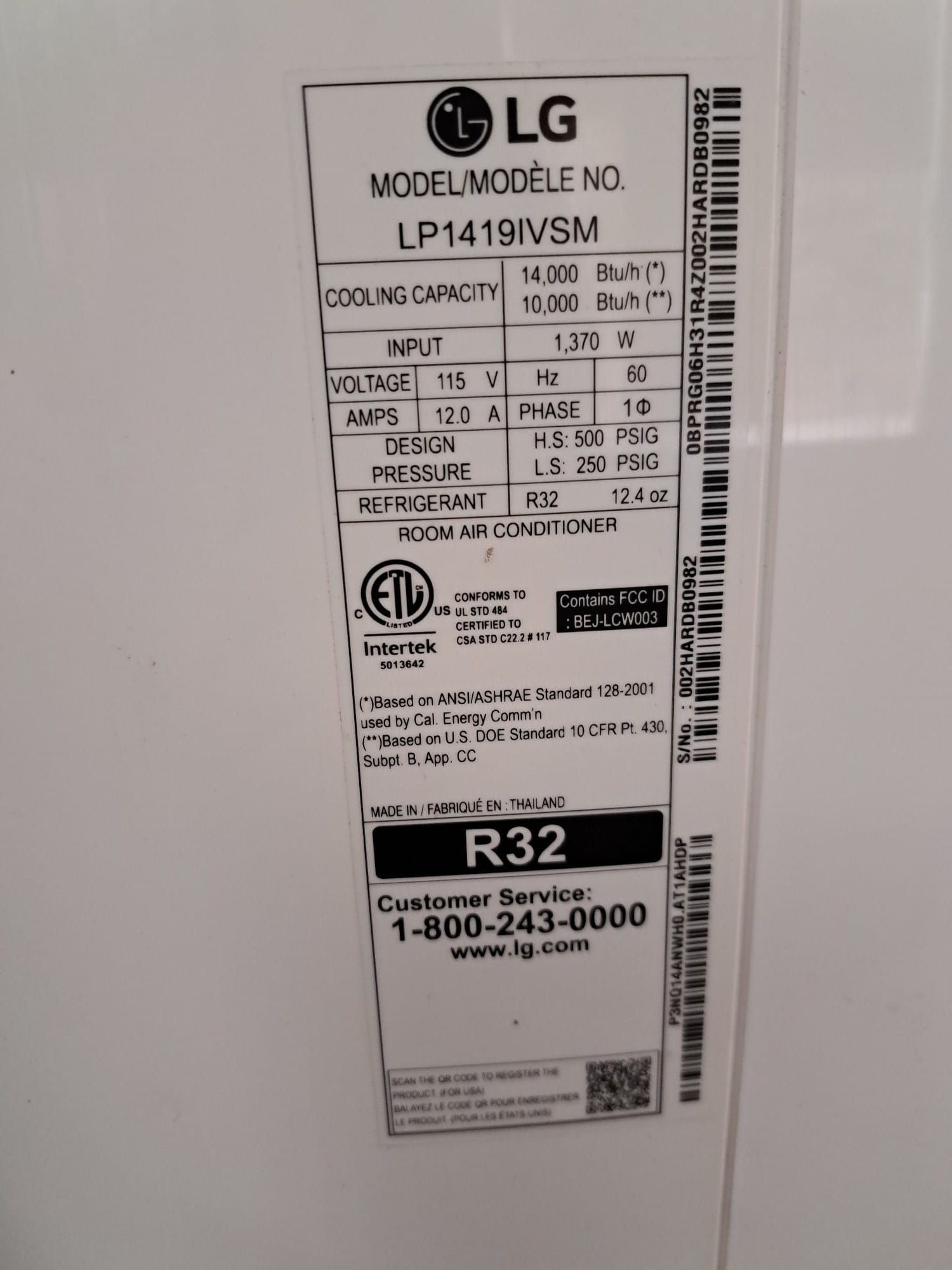 1449 LG portable Air conditioner model LP1419ivsm