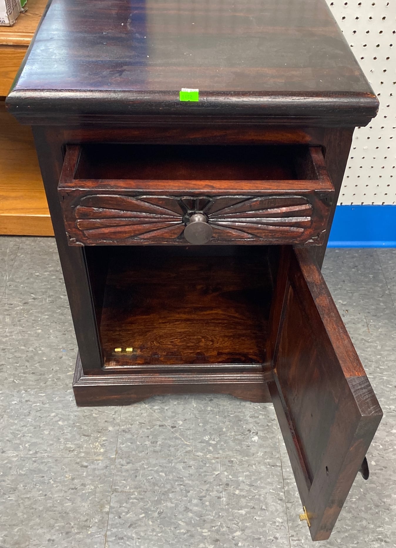 1461 Solid wood 1 drawer stand with carving 30x29.5x20