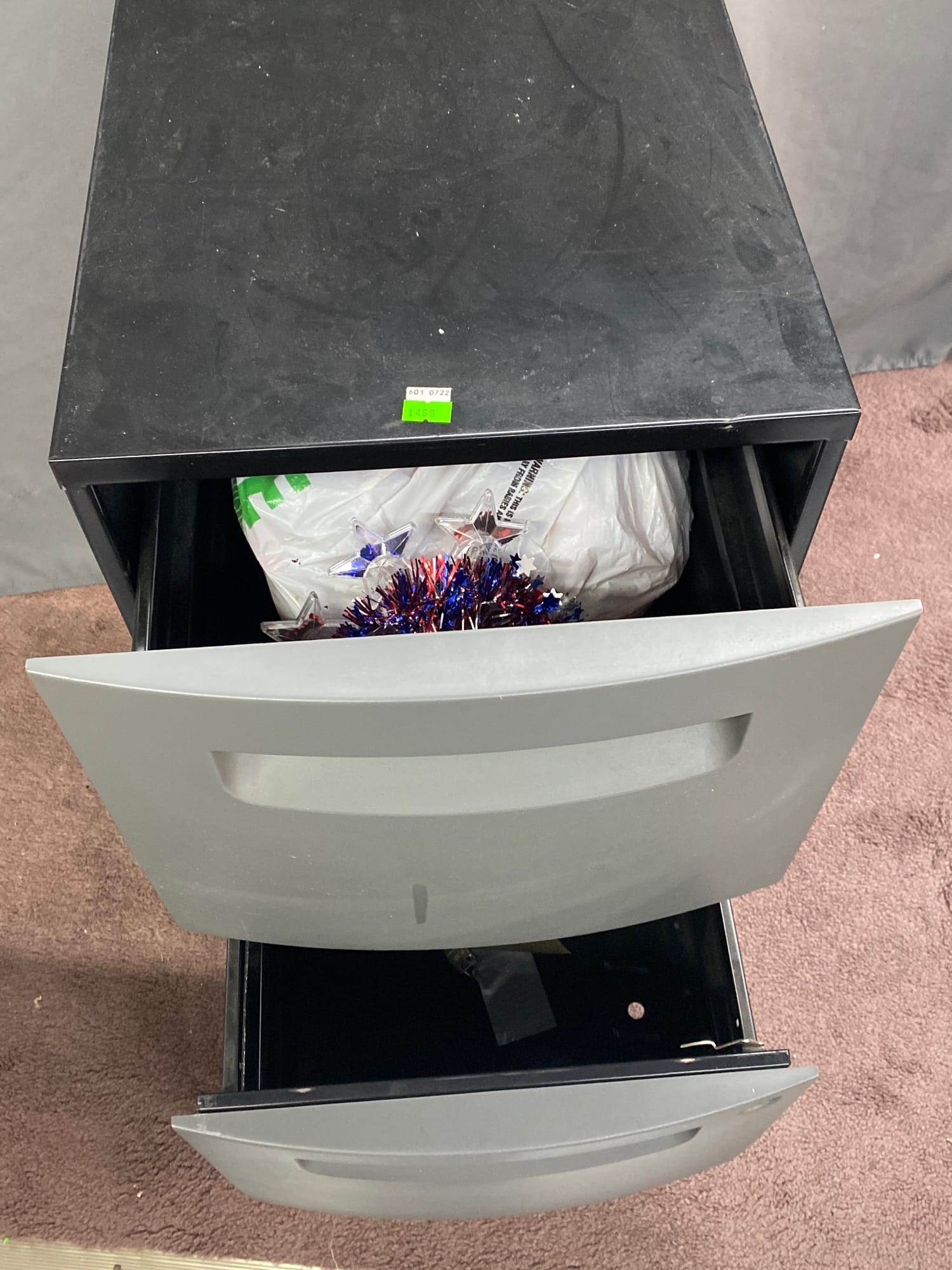 1459 Metal 2 drawer file cabinet on casters 14x19x26.5