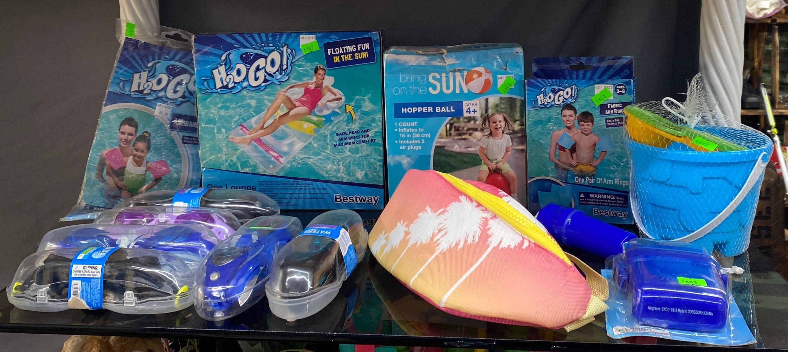 1463 Inflatable pool items, waist cooler, water goggle assortment, water toys