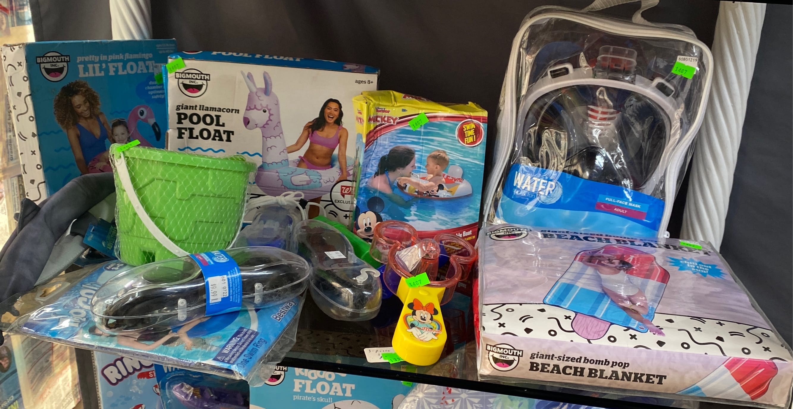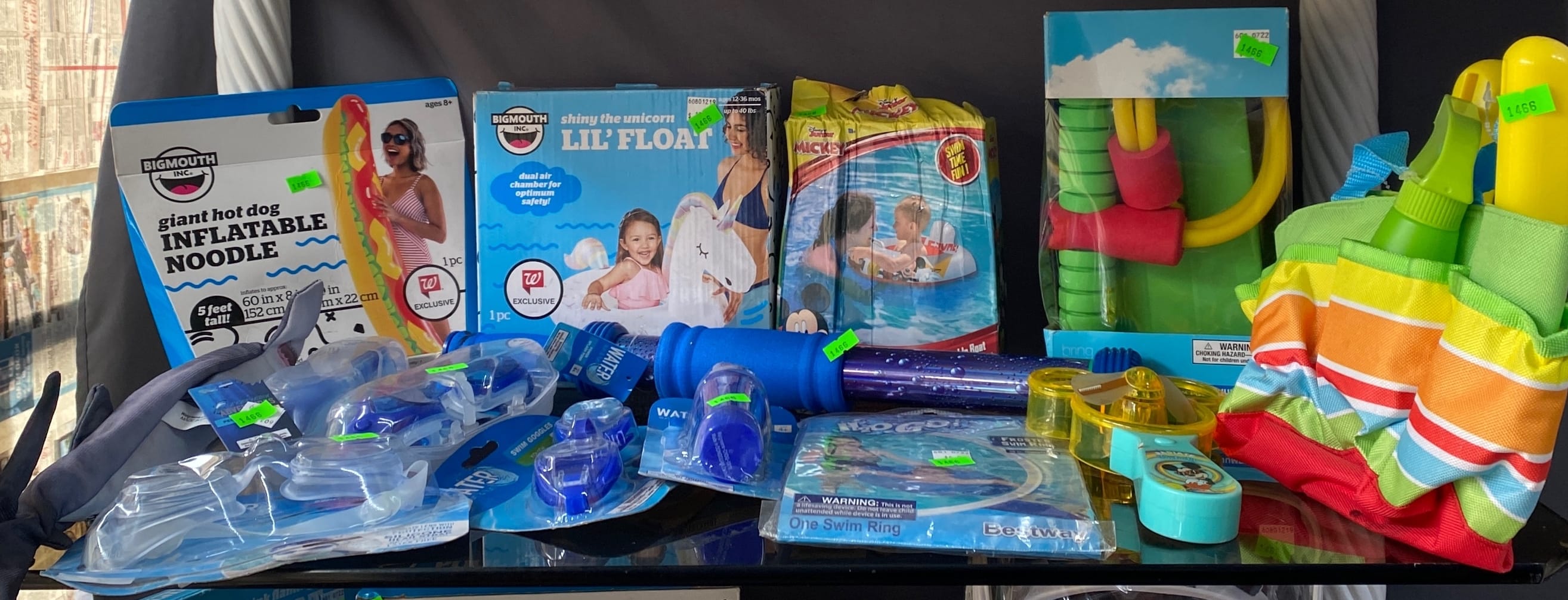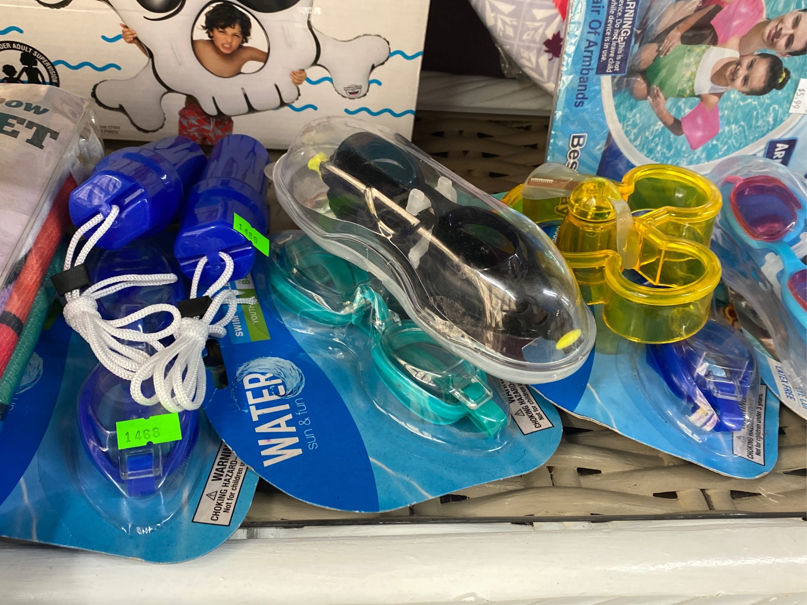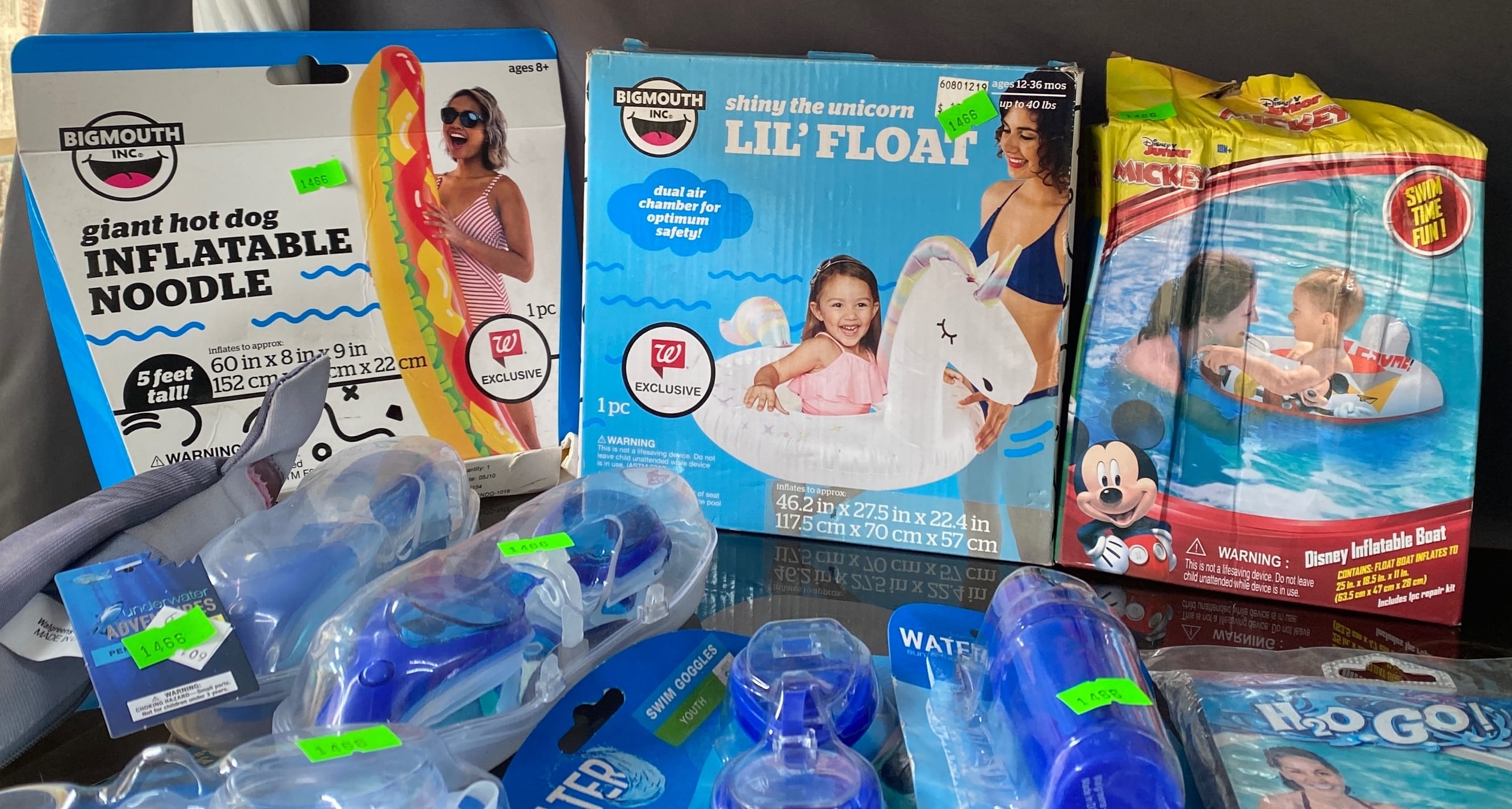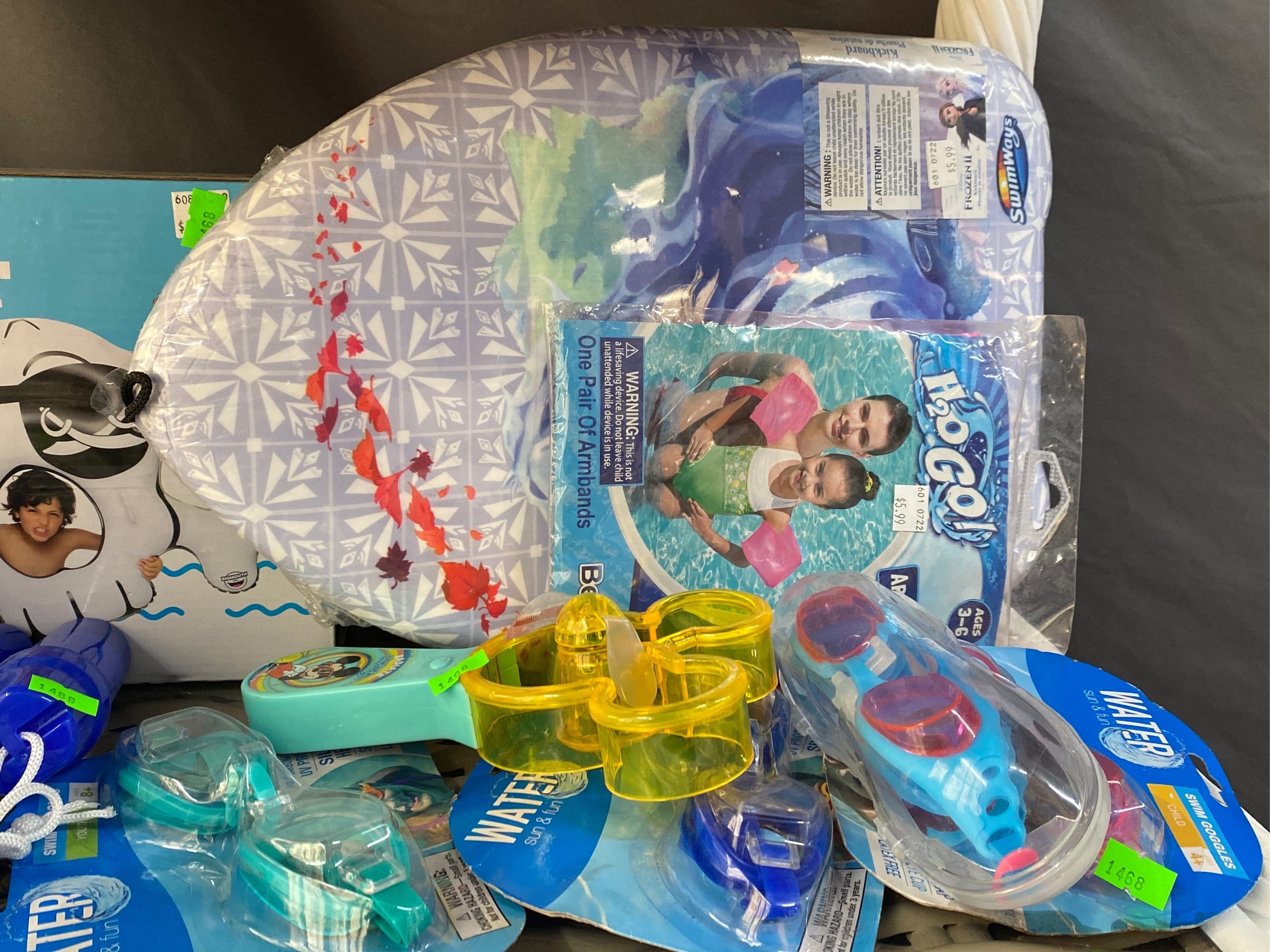 1465 Inflatable pool items, waist cooler, water goggle assortment, water toys