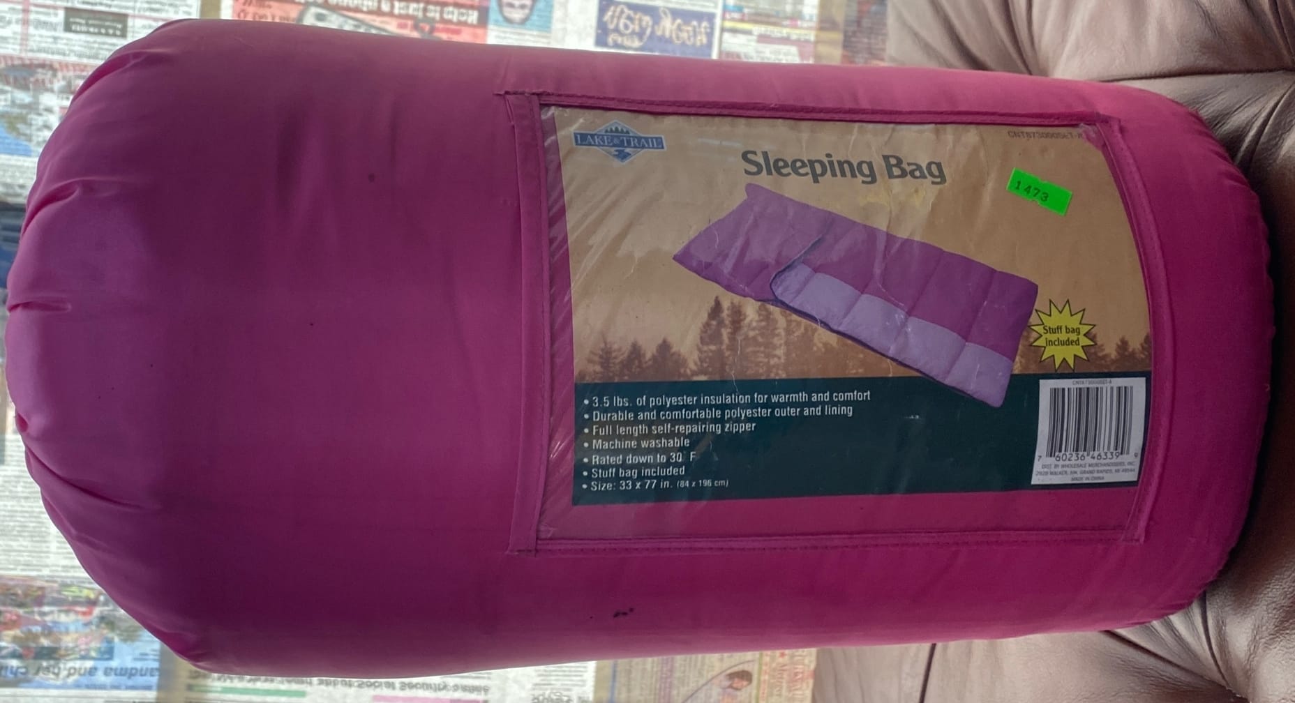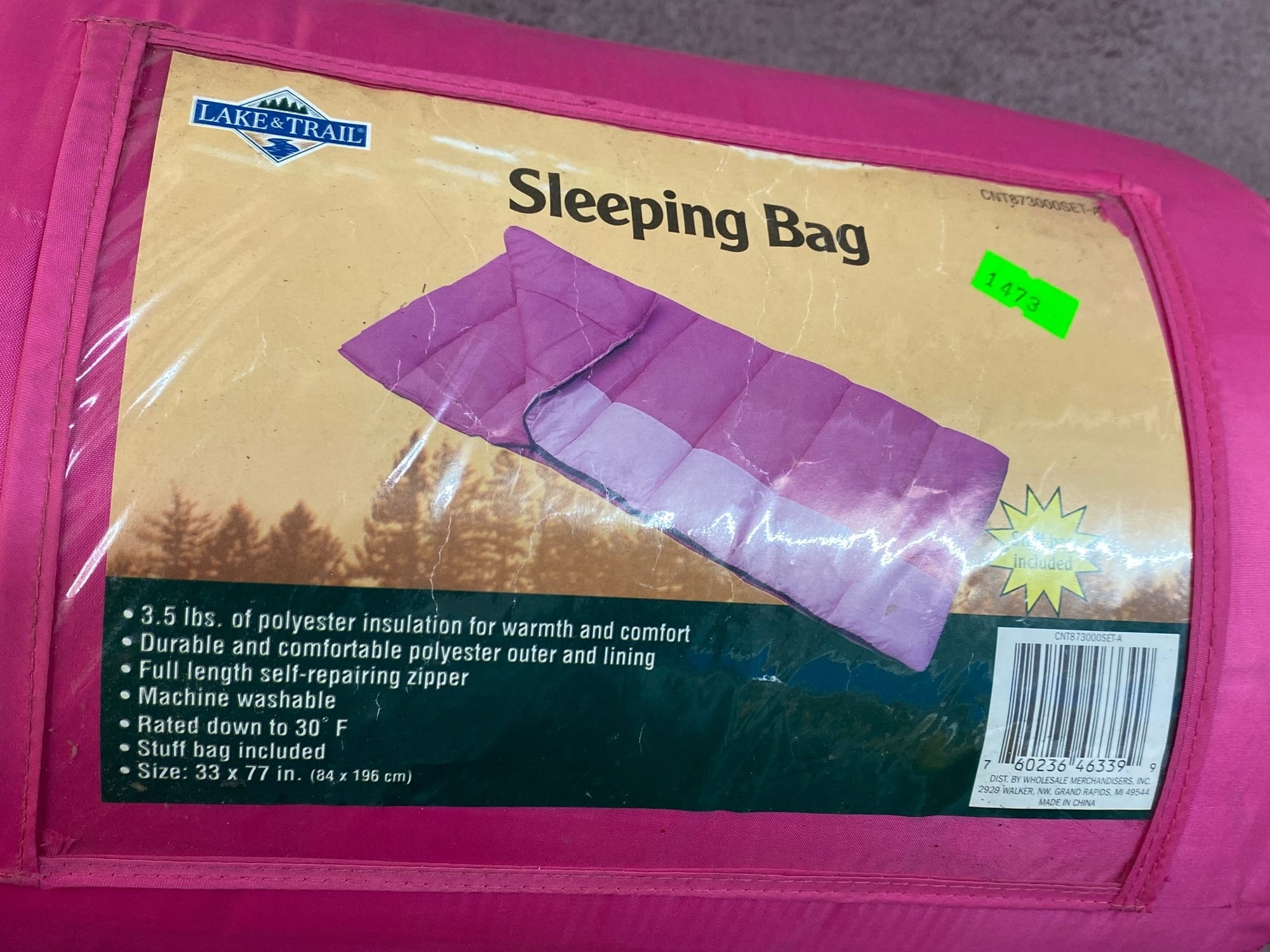 1473 Lake & Trail pink sleeping bag 33x77in