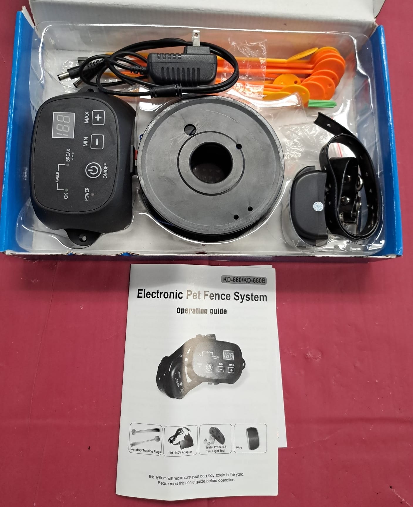 1496 Electronic pet fence system open package appears complete