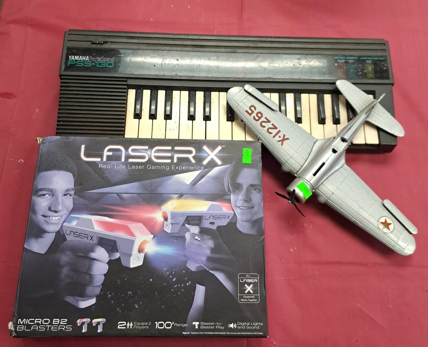 1501 Laser X game, Texaco airplane bank missing canopy, Yamaha pss-130 keyboard no power cord