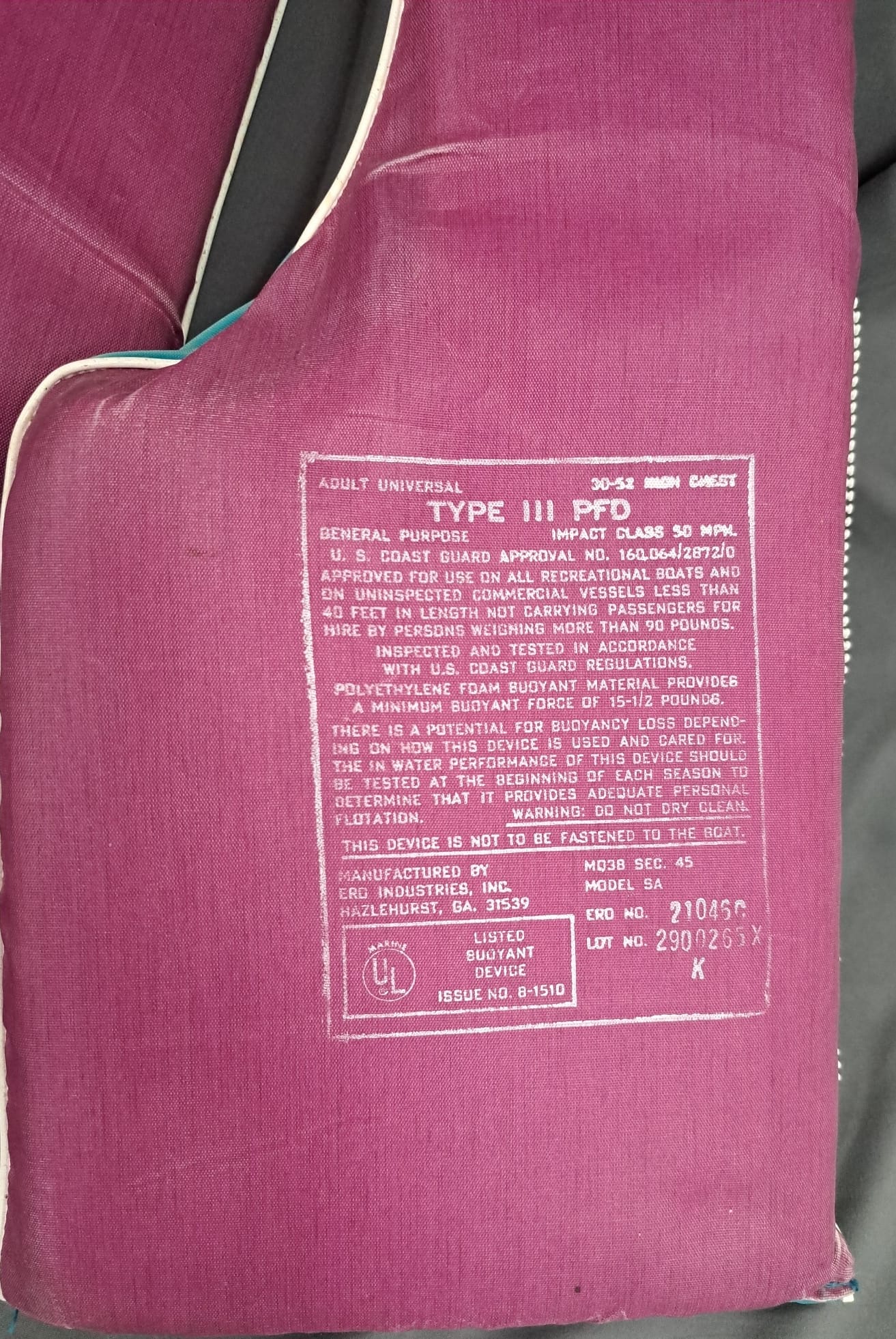 1508 Life vest , child , adult small vest, 30-52 floatation device