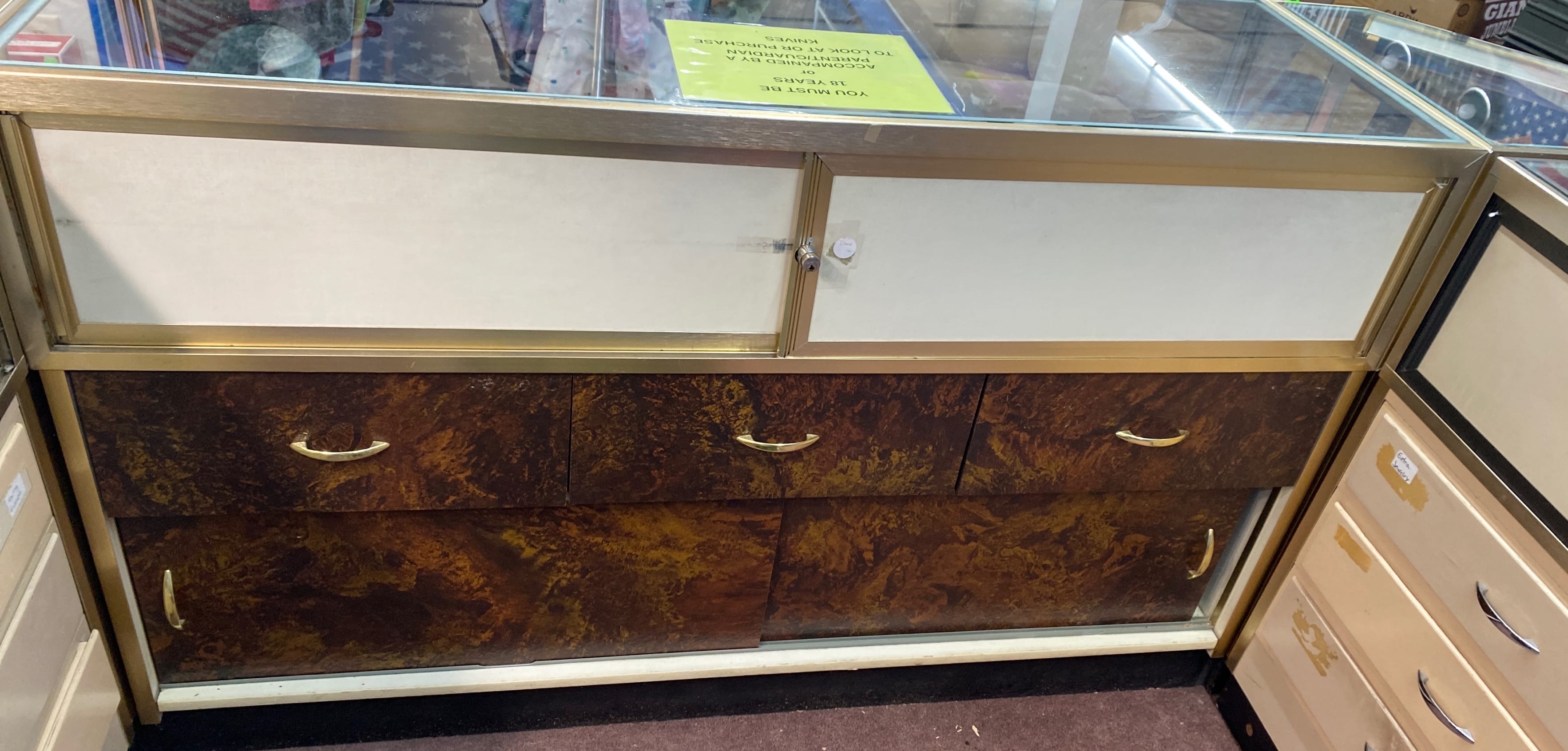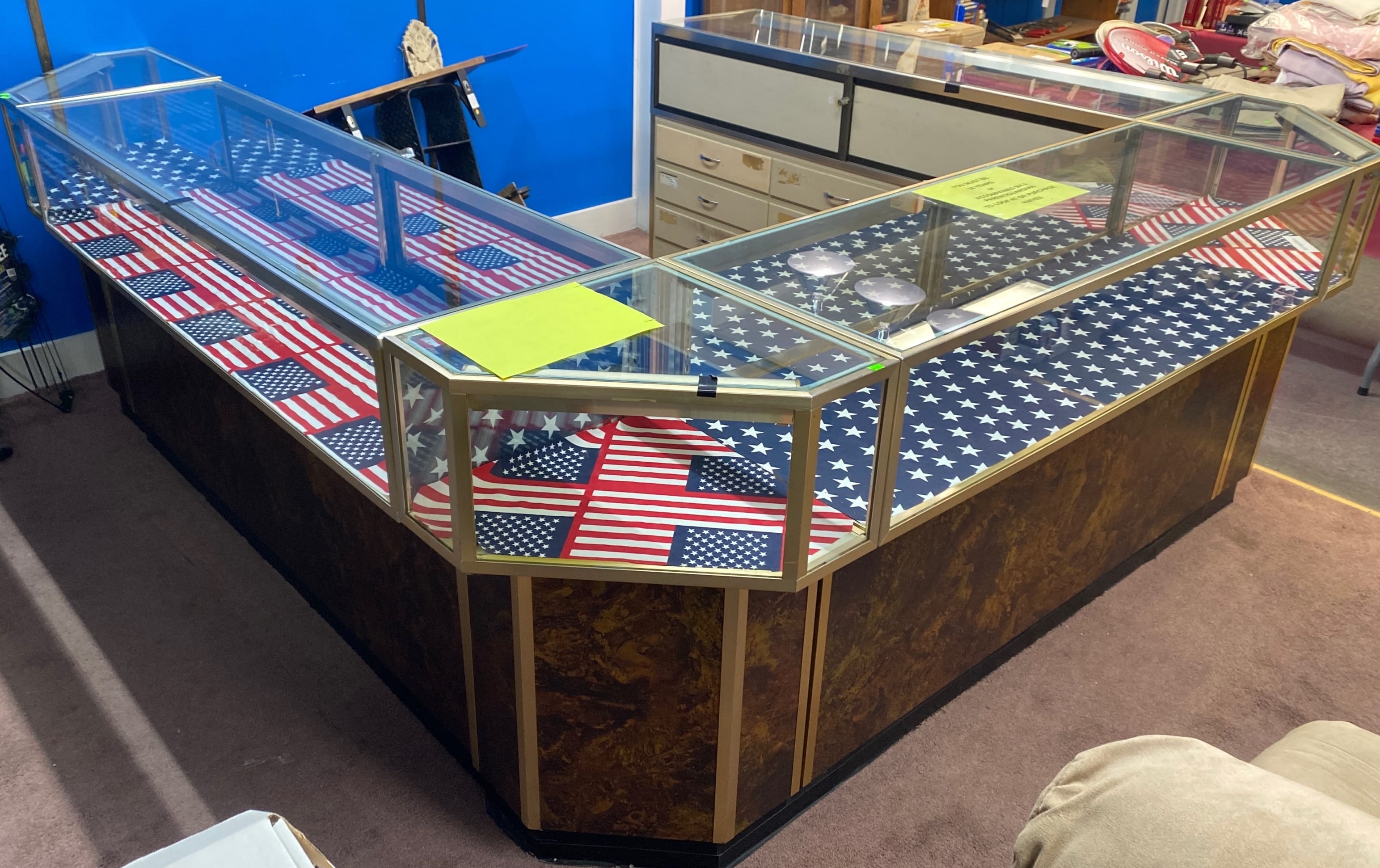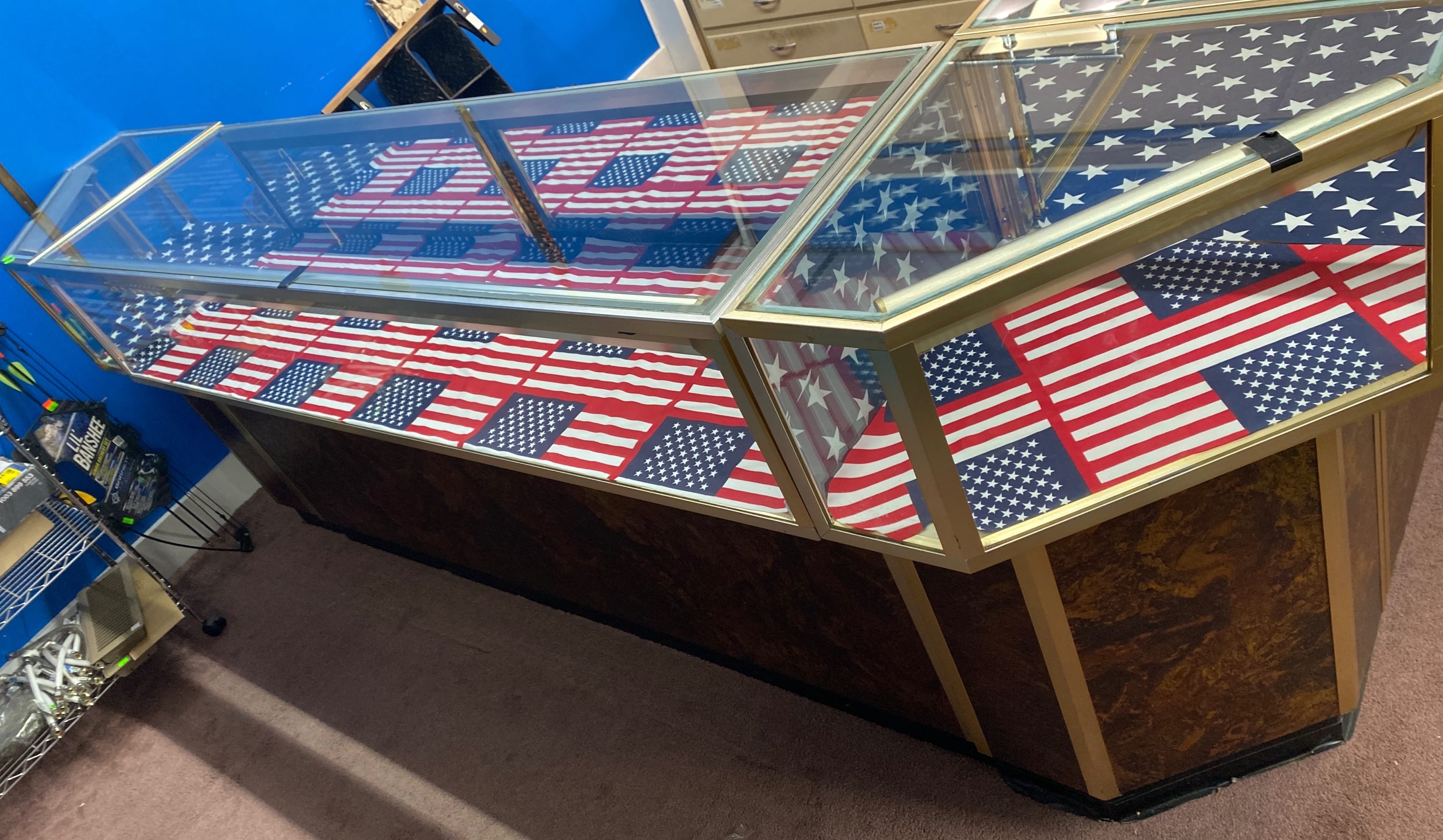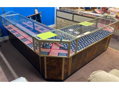 1510 6 piece Store counter display showcase unit, one 60in long, two 70in long, three corner units 20x20x38