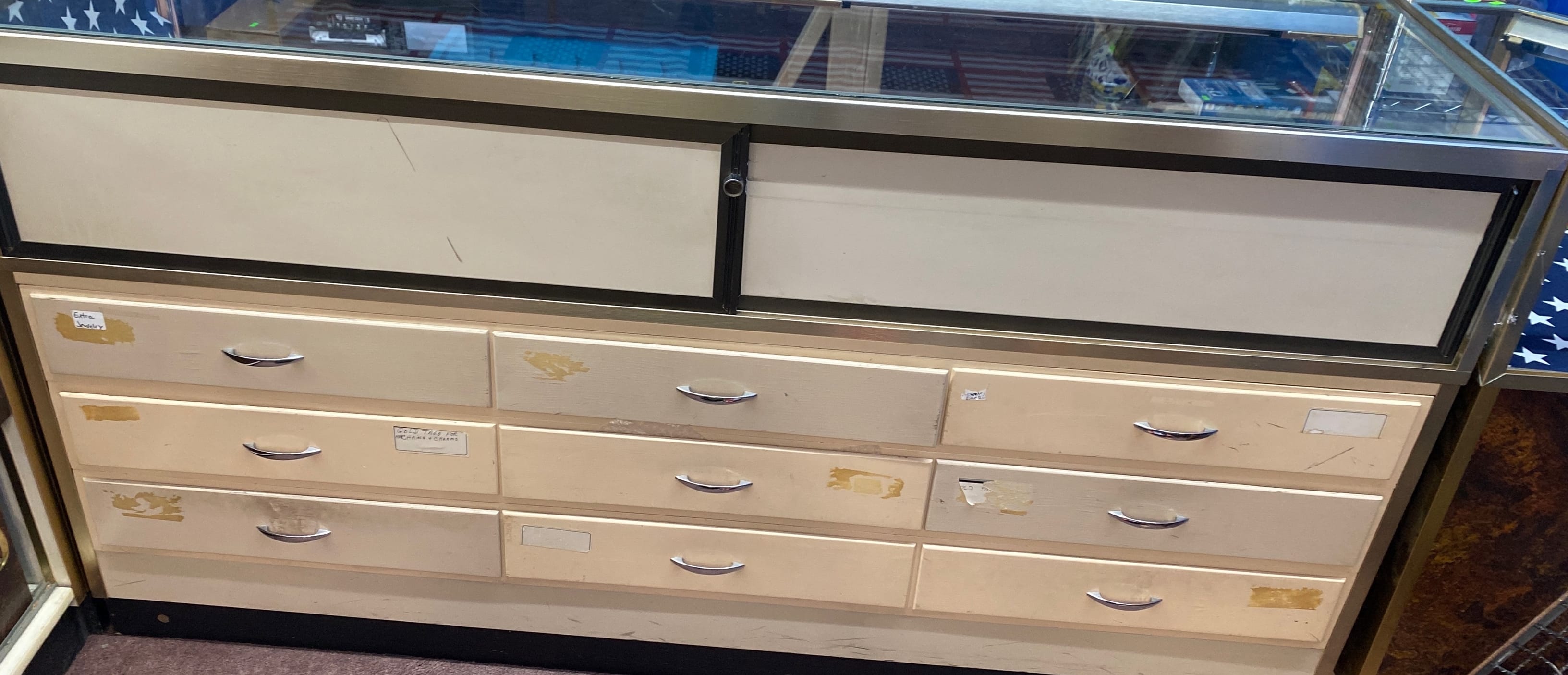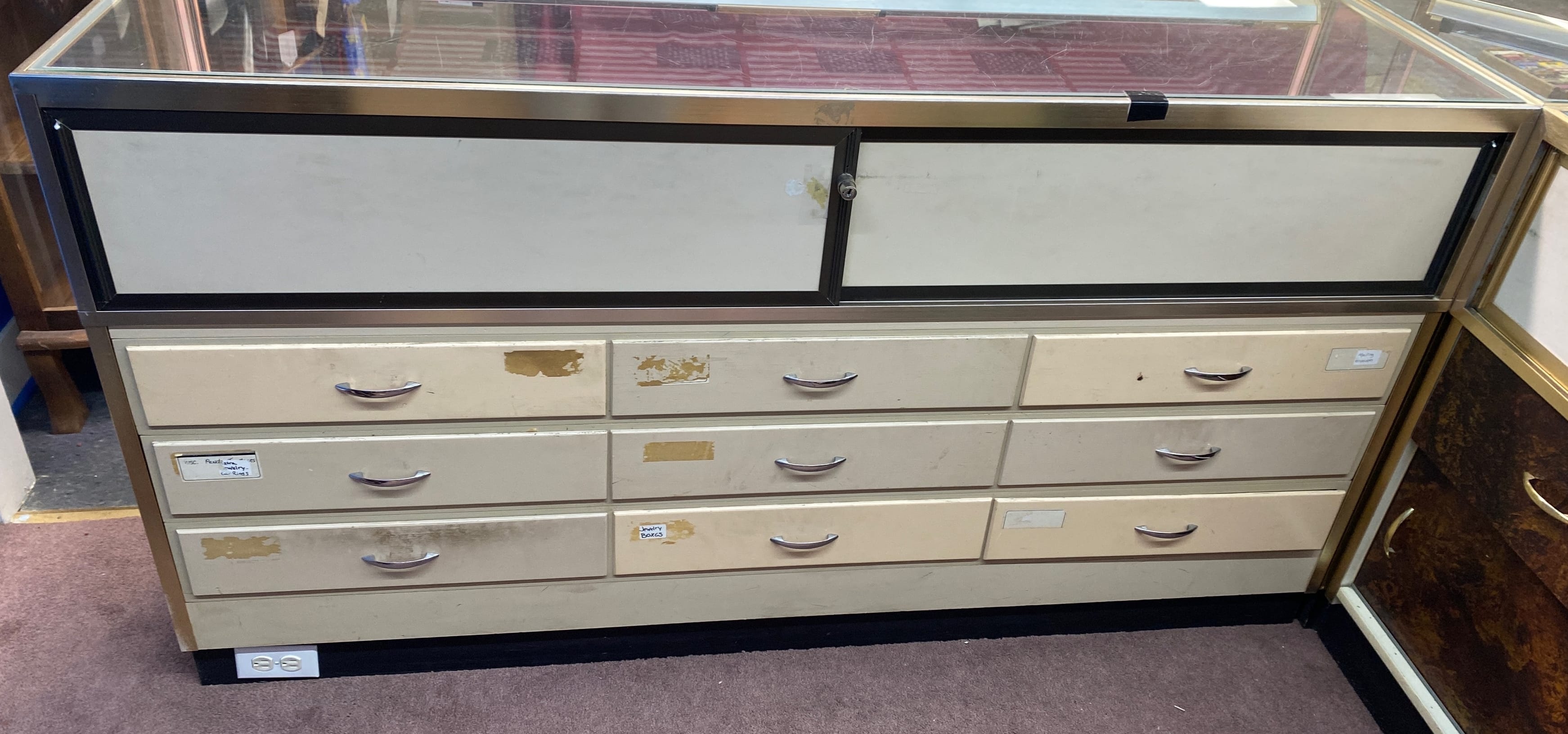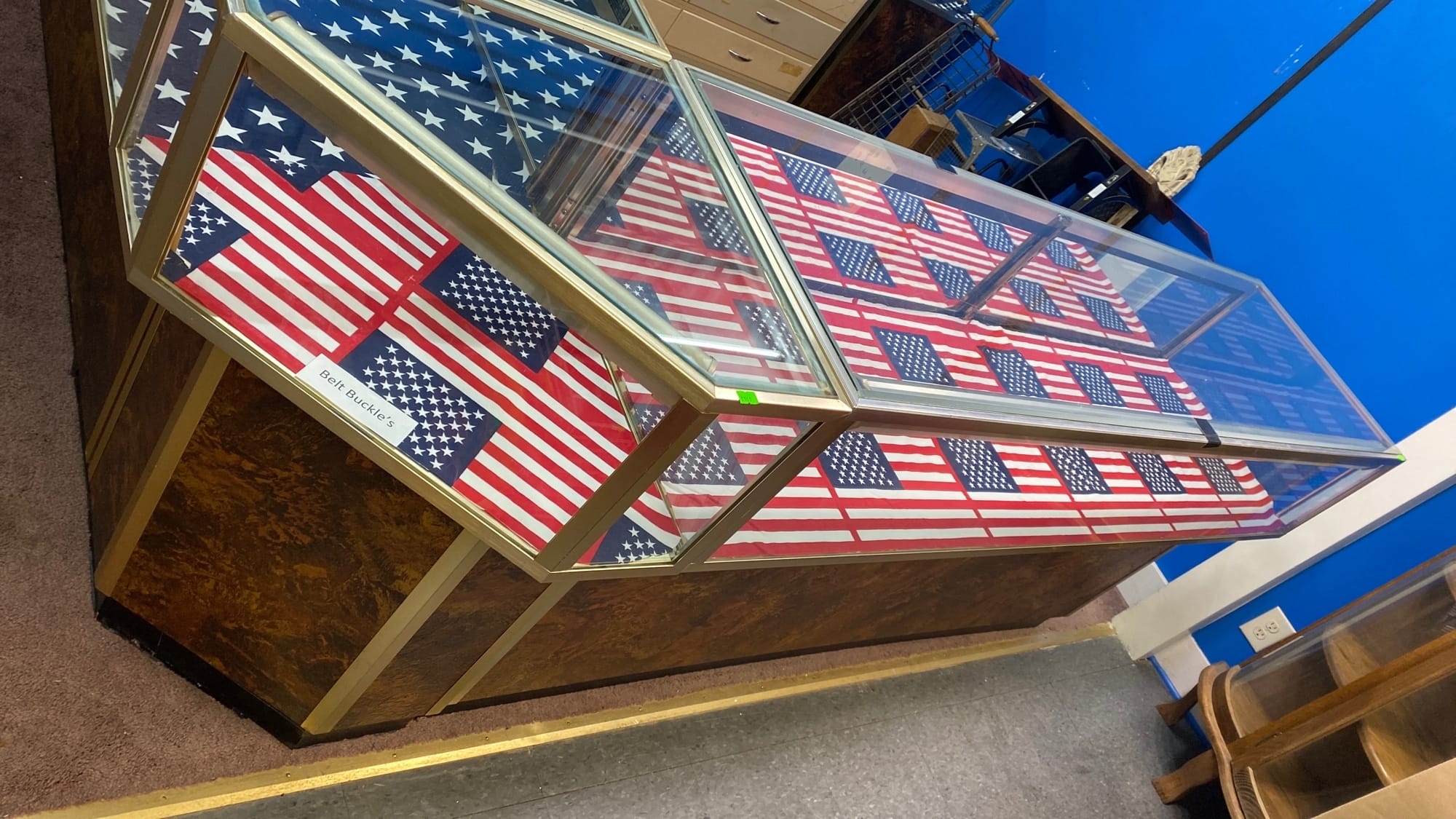 1510 6 piece Store counter display showcase unit, one 60in long, two 70in long, three corner units 20x20x38