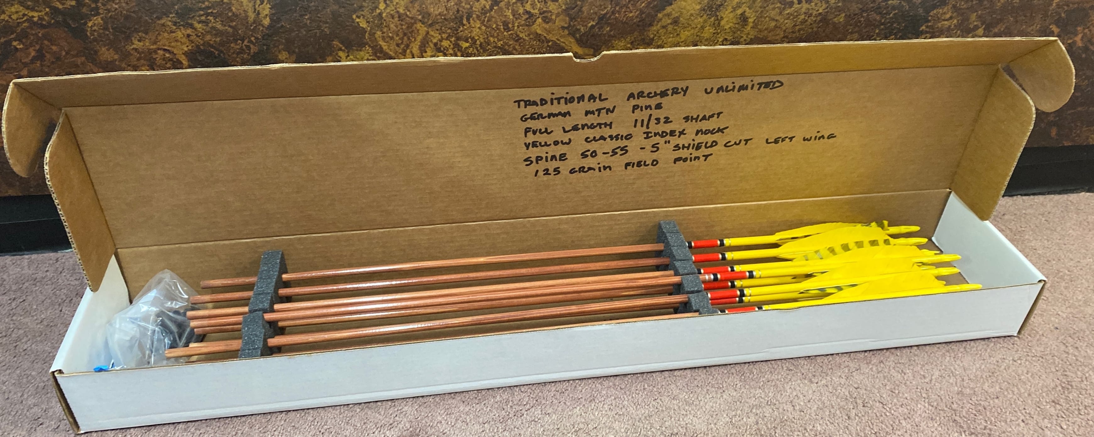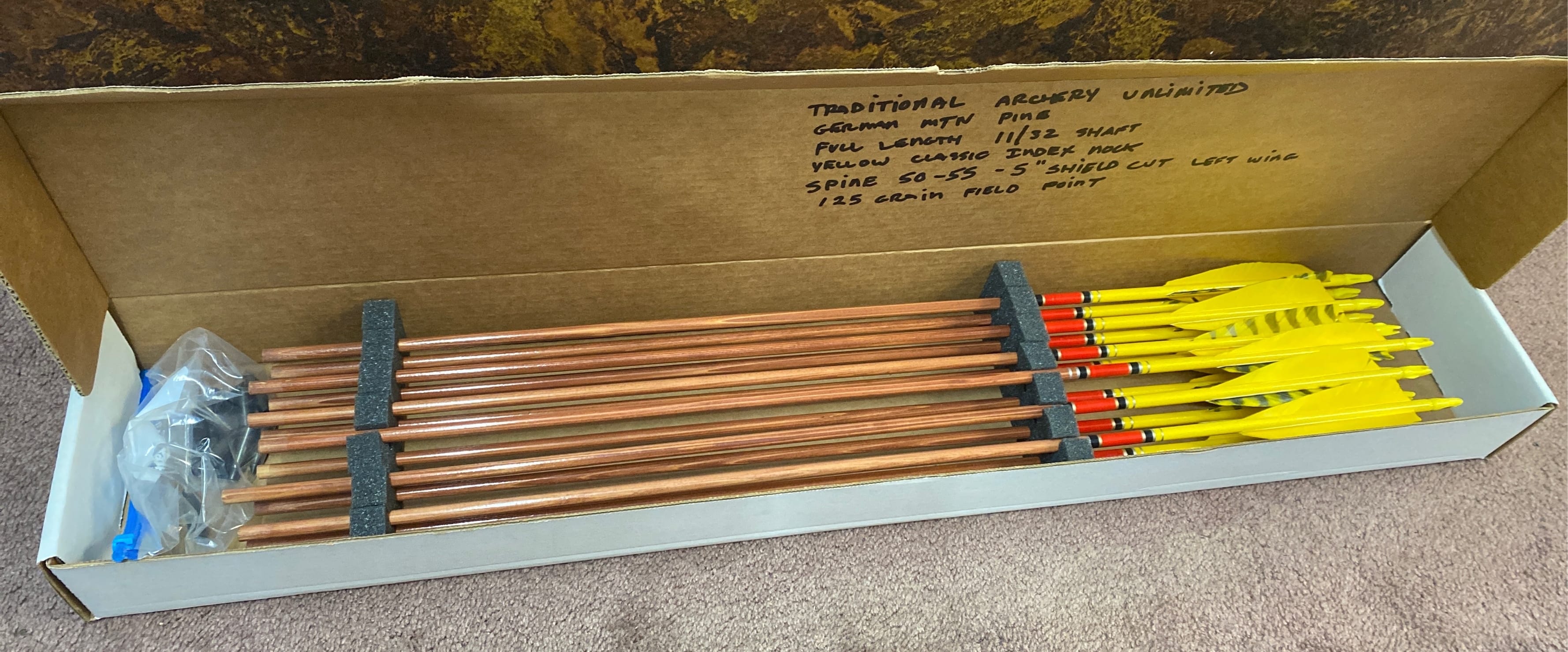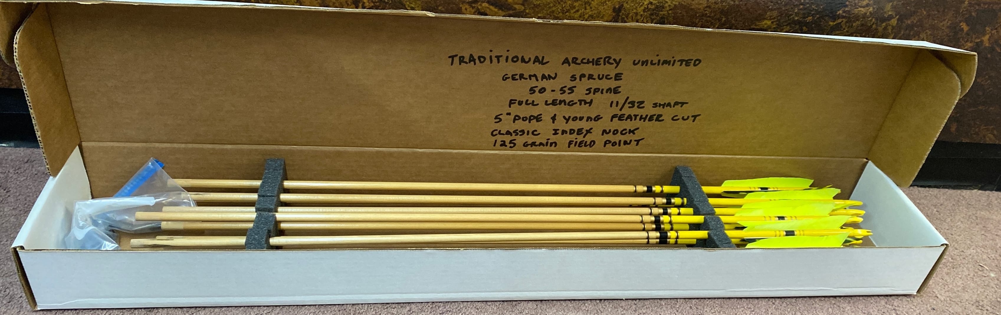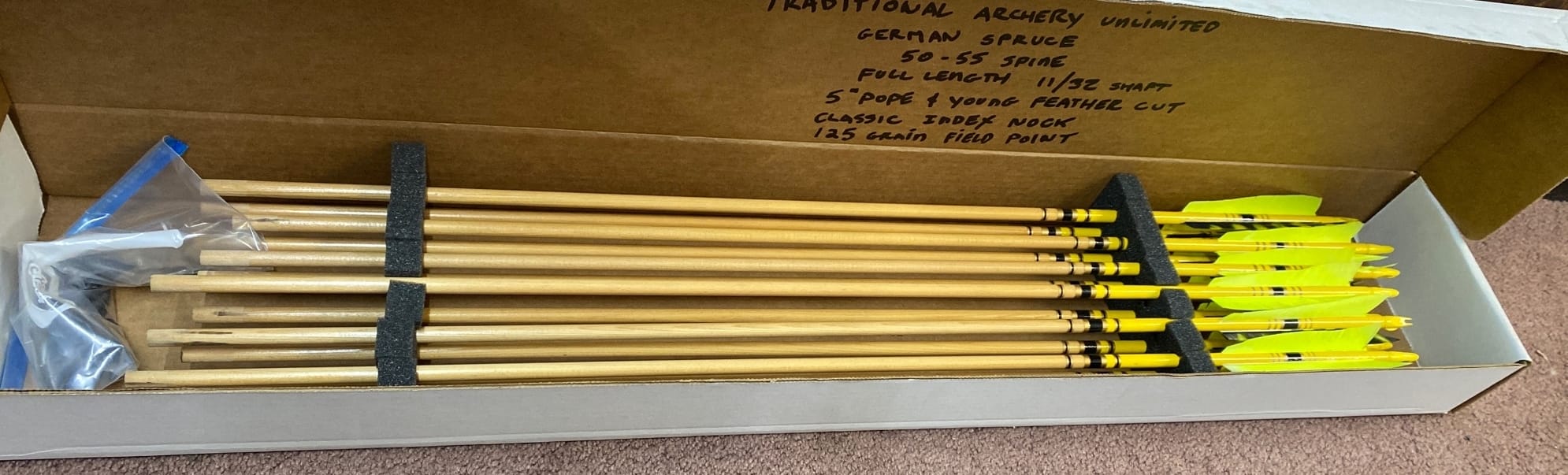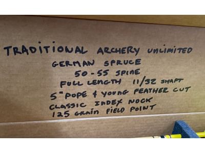 1511 12 Custom arrows German Spruce made by Traditional archery unlimited with 125 grain Field points