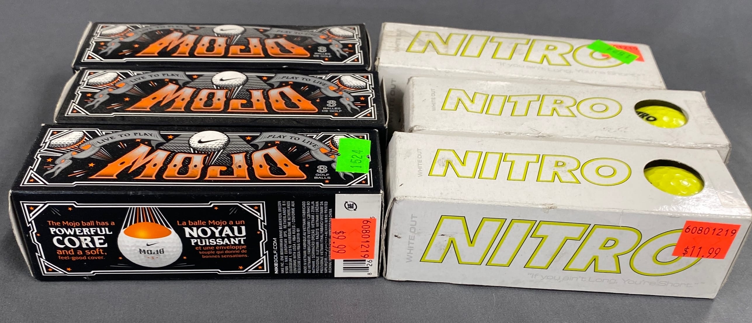 1524 Nike mojo and nitro yellow golf balls