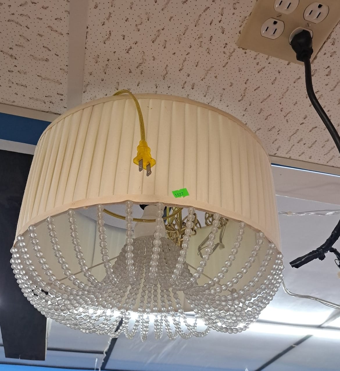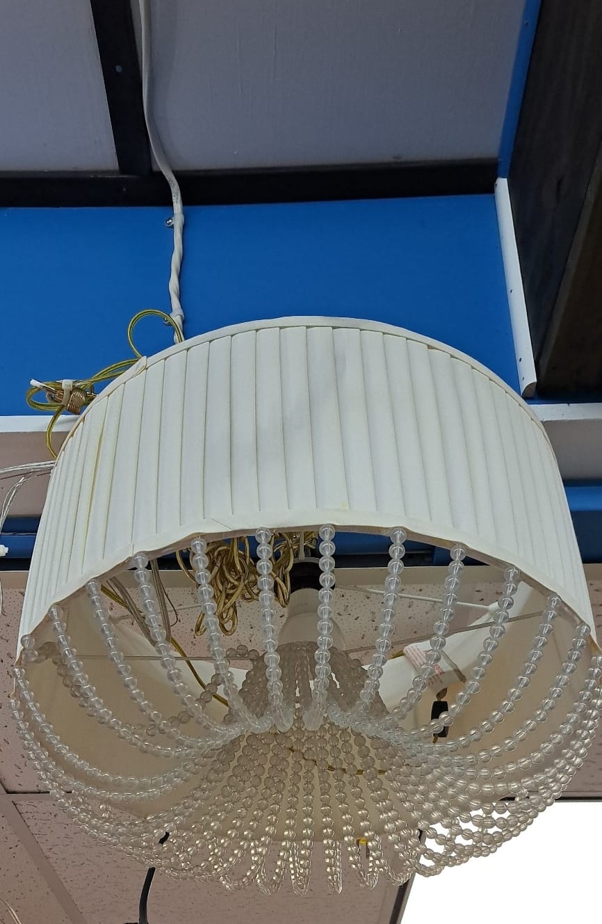 1527 Hanging swag lamp 17in dia. Temporary plug wired