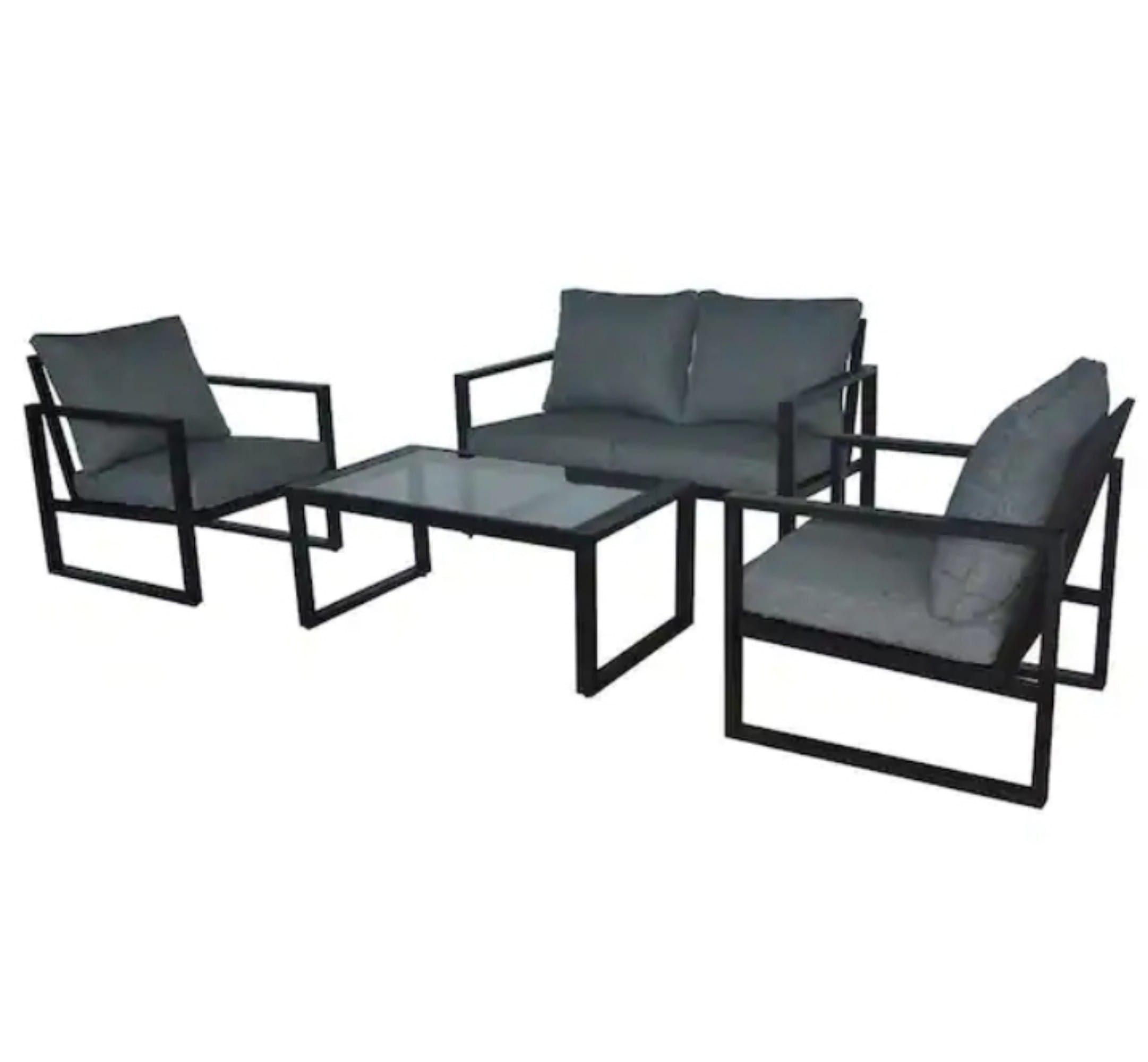 Barclay Black 4-Piece Steel Outdoor Patio Conversation Set with Grey Cushions"