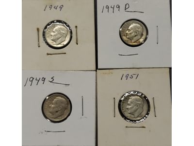 121 4 Silver Roosevelt Dimes (1949, 1949-D, 1949-S, 1951)