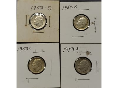 122 4 Silver Roosevelt Dimes (1952-D, 1952-S, 1953-S, 1954-S)