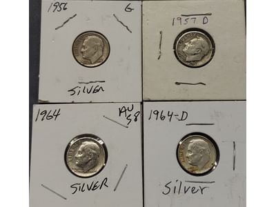 123 4 Silver Roosevelt Dimes (1956, 1957-D, 1964, 1964-D)