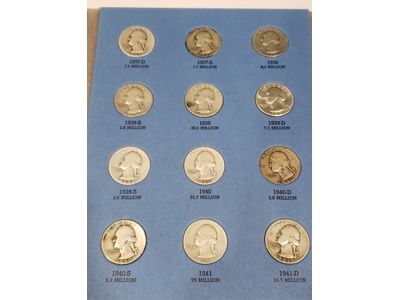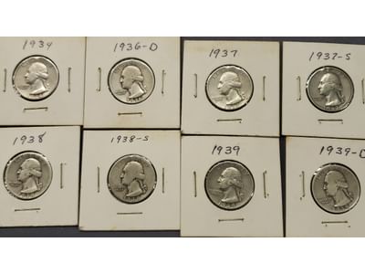 126 8 Silver Washington Quarter (1934, 1936-D, 1937, 1937-S, 1938, 1938-S, 1939, 1939-D)