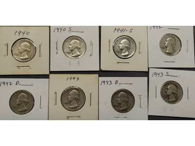 127 8 Silver Washington Quarter (1940, 1940-S, 1941-S, 1942, 1942-D, 1943, 1943-D, 1943-S)