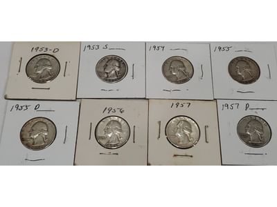 129 8 Silver Washington Quarters (1953-D, 1953-S, 1954, 1955, 1955-D, 1956, 1957, 1957-D)
