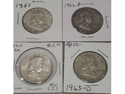135 4 Franklin Half-Dollars (1961, 1962-D, 1963, 1963-D)