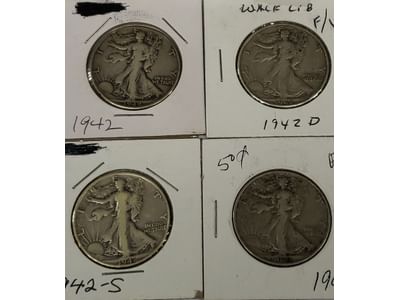 142 4 Walking Liberty Half-Dollars (1942, 1942-D, 1942-S, 1943)
